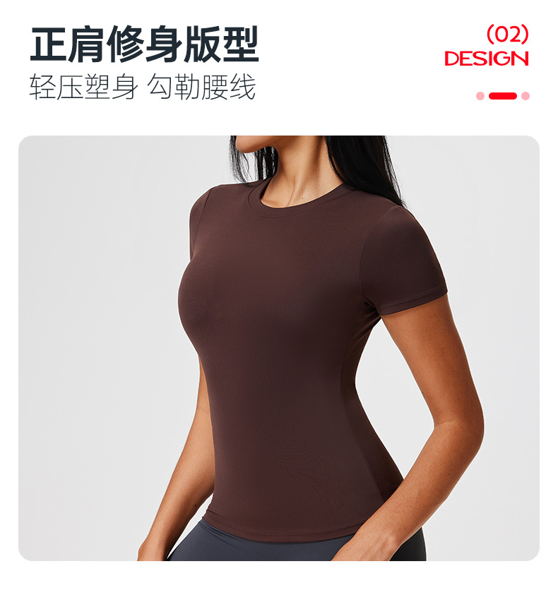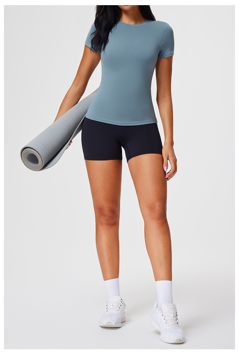 范斯蒂克 女款纯色t恤 FBF2506701 碳蓝色 短袖女夏修身健身服 运动裸感正肩跑步瑜伽服上衣 轻盈有弹力 轻压塑身 勾勒腰线