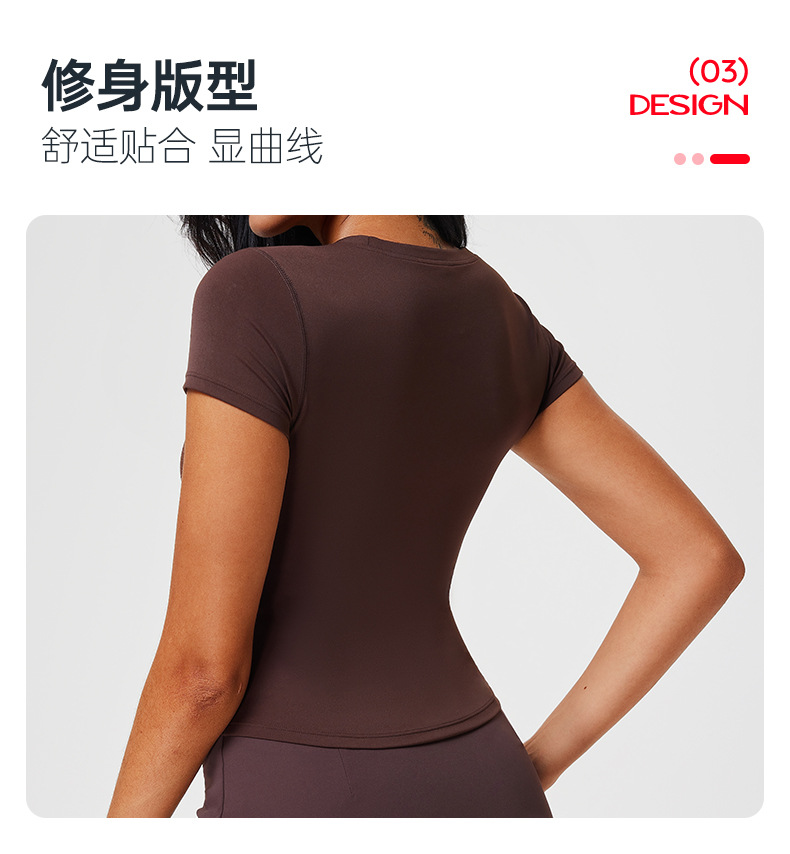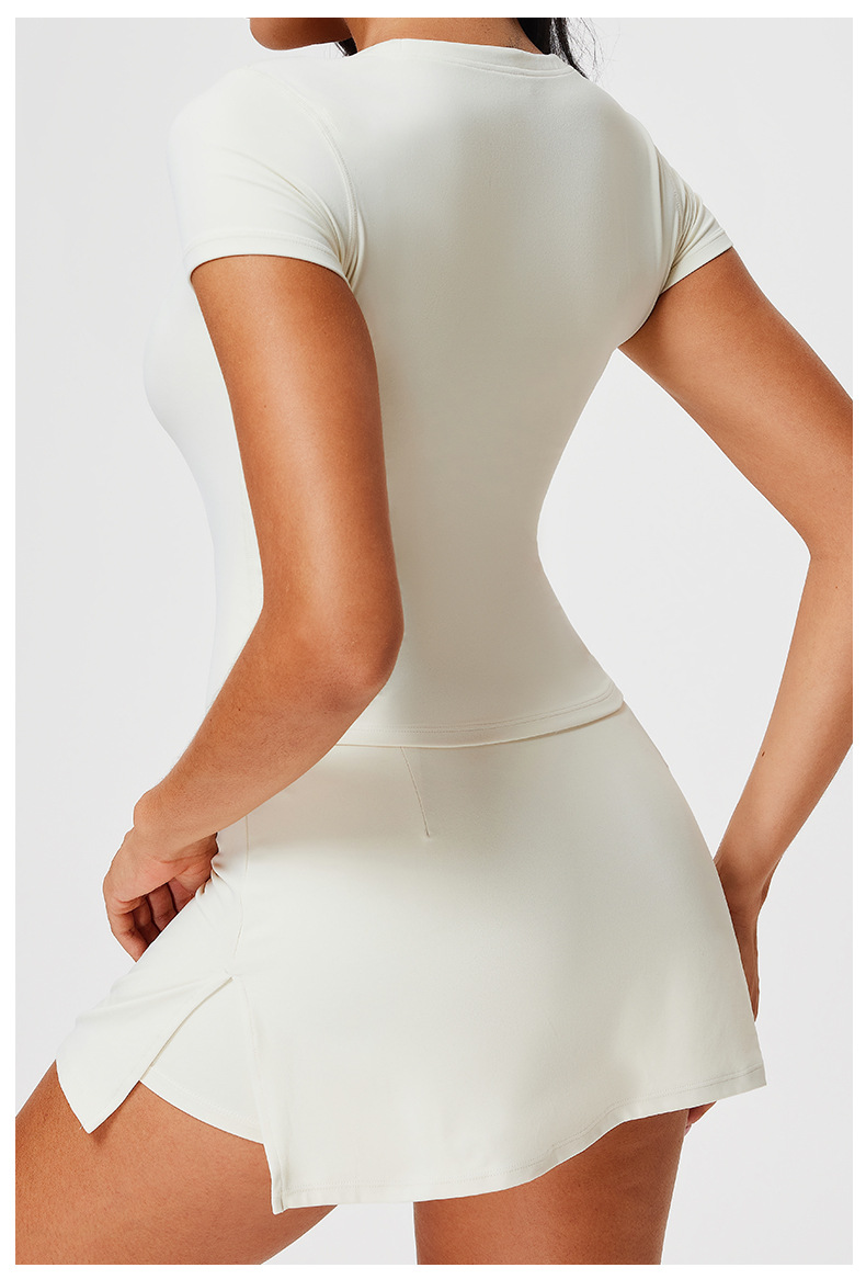 范斯蒂克 V领短袖t恤女 NSRF2504301 白色 夏荷叶边修身简约百搭运动弹力健身瑜伽上衣