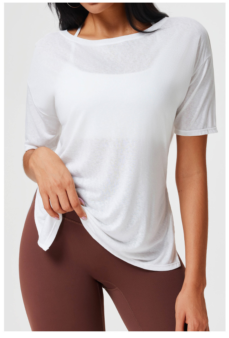 范斯蒂克 开叉健身衣罩衫(短袖款)YCF2501001 白色 夏季短袖透气休闲时尚百搭跑步运动瑜伽罩衫 柔软透气 舒适垂感 经典百搭