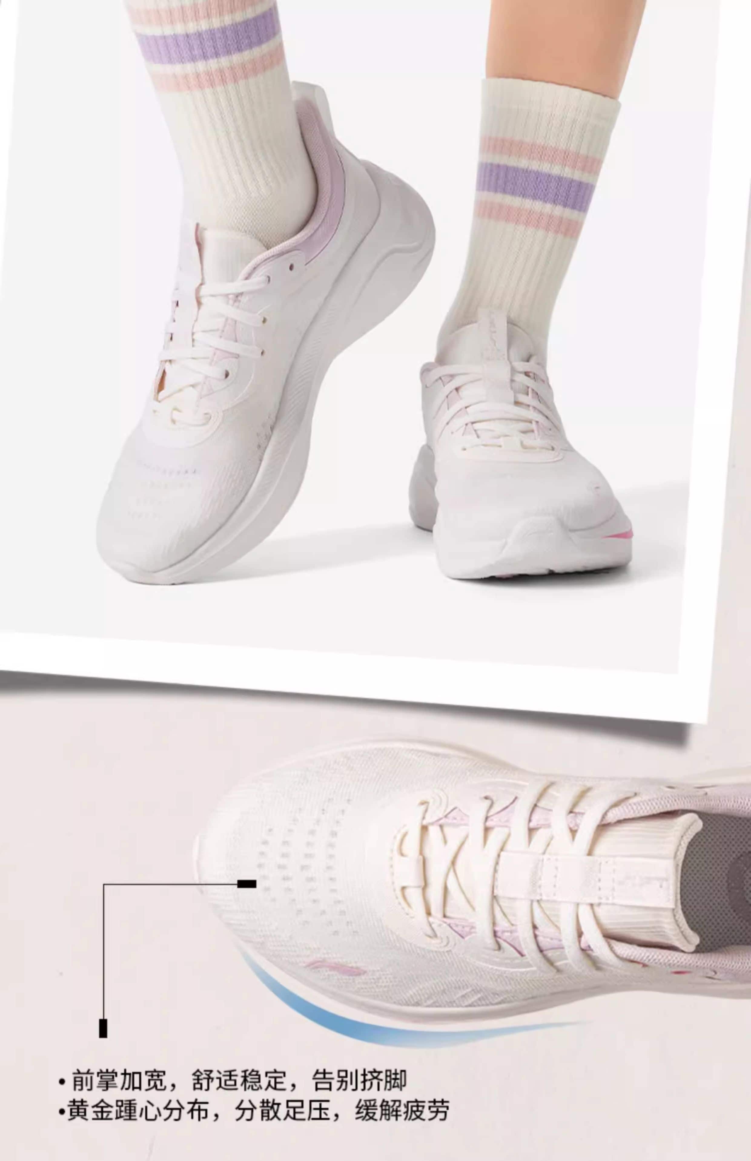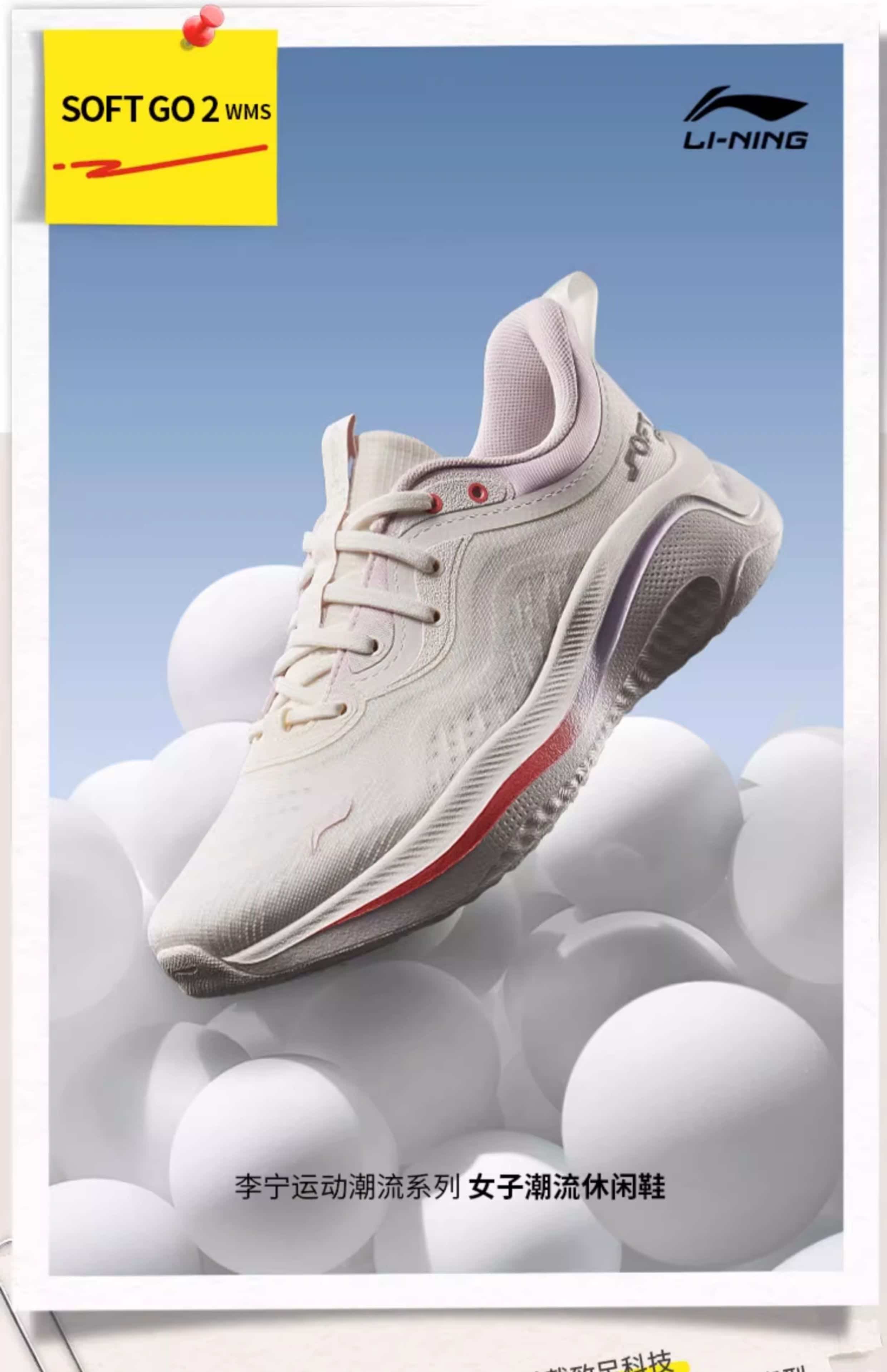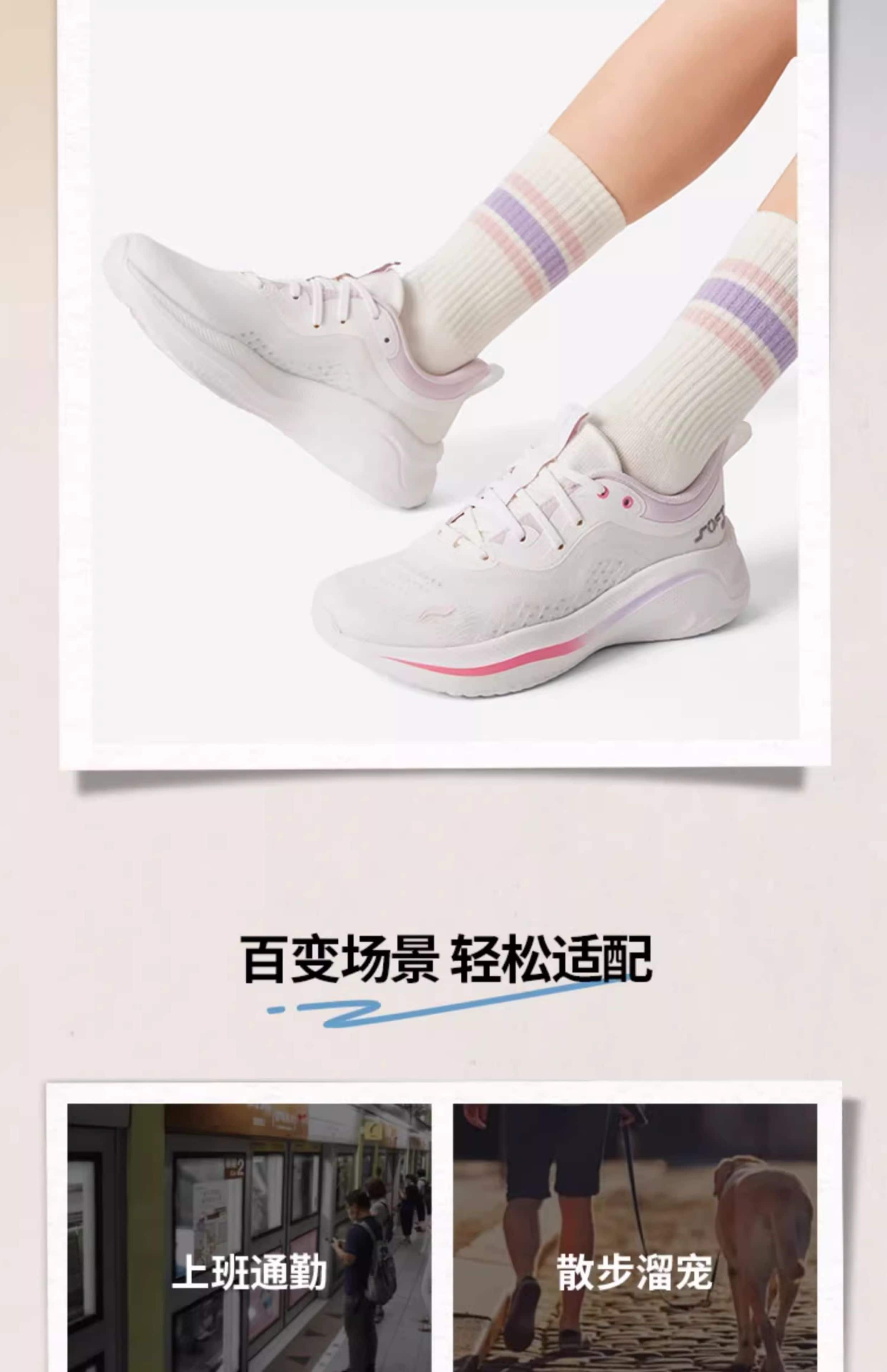 LINING李宁 女 休闲鞋 SOFT GO 2秋季新款跑步鞋 透气回弹柔软舒适潮流运动鞋 AGLV040-2 乳白色