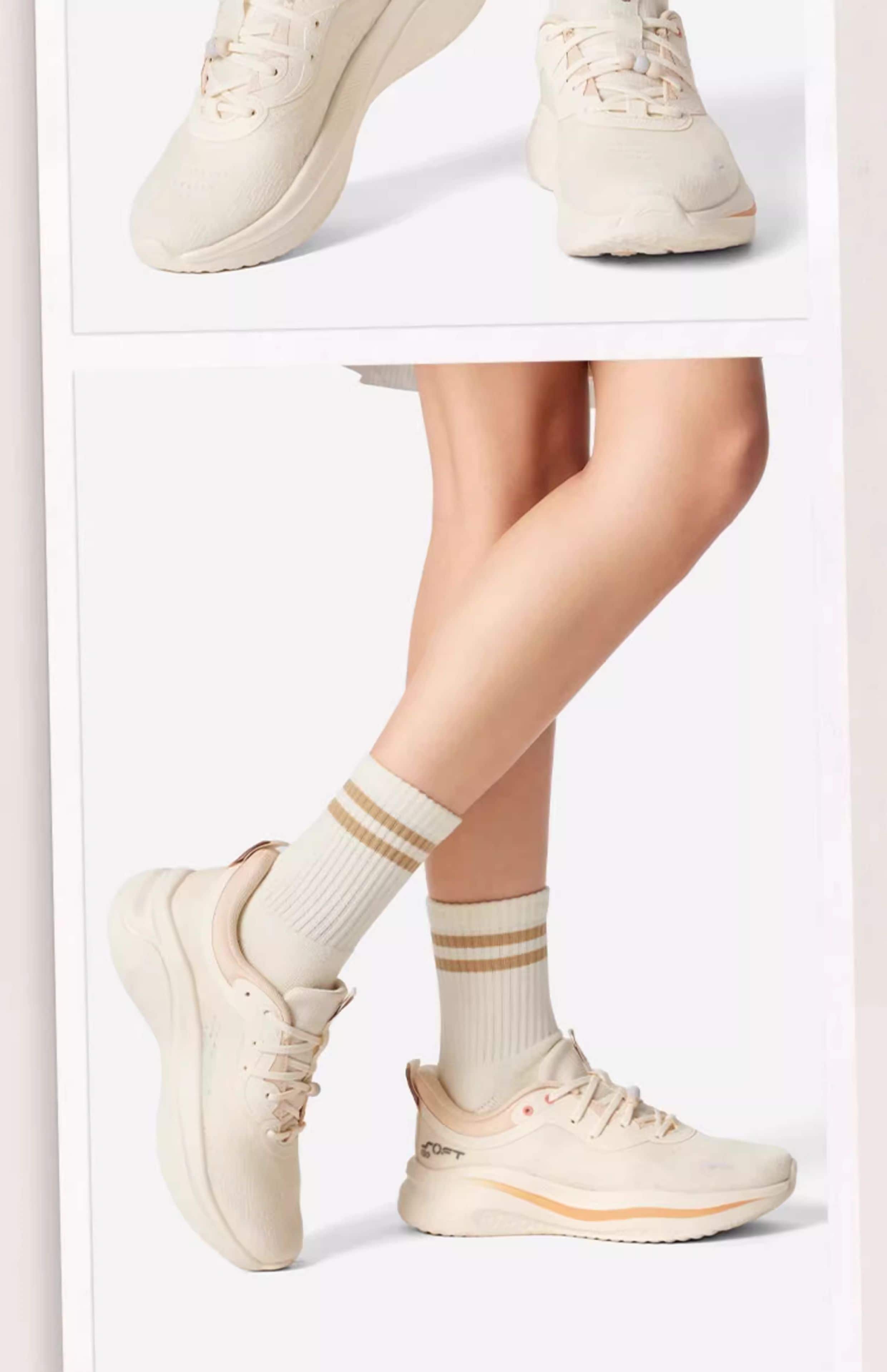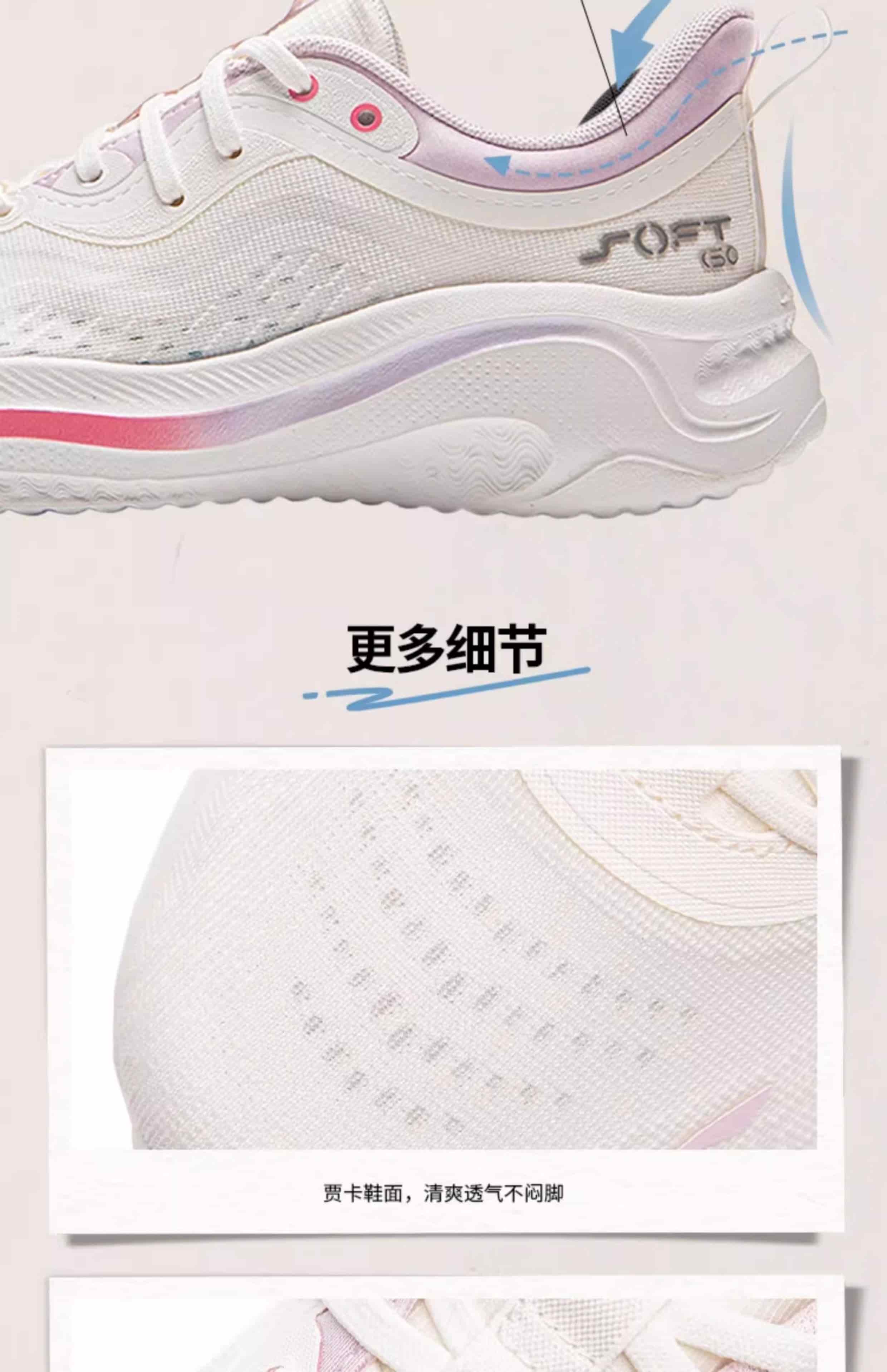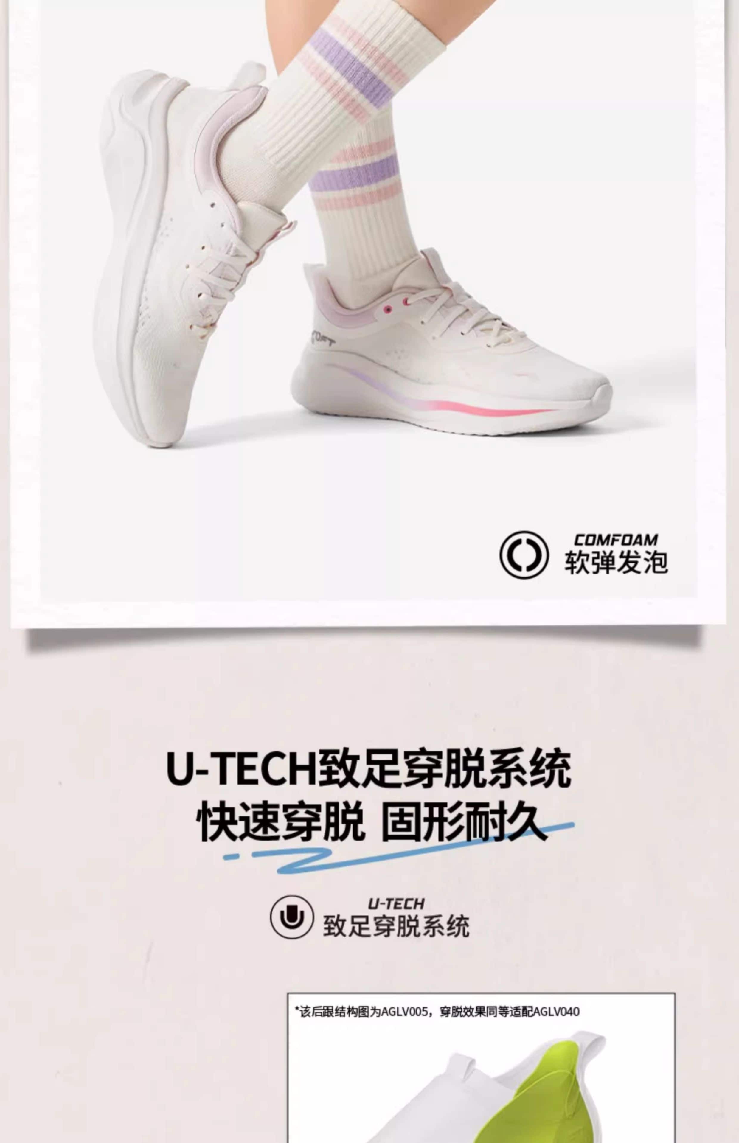 LINING李宁 女 休闲鞋 SOFT GO 2秋季新款跑步鞋 透气回弹柔软舒适潮流运动鞋 AGLV040-2 乳白色