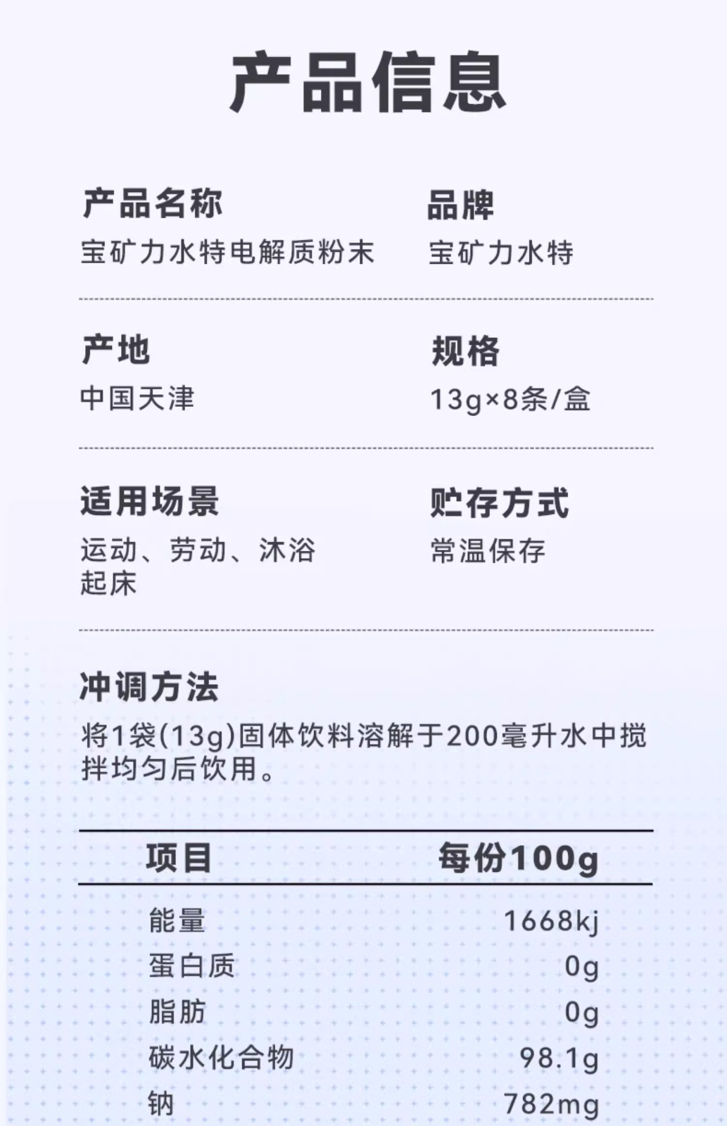 宝矿力水特 电解质冲剂粉末运动性功能饮料 1盒装(8包)