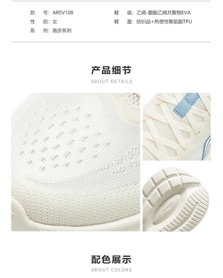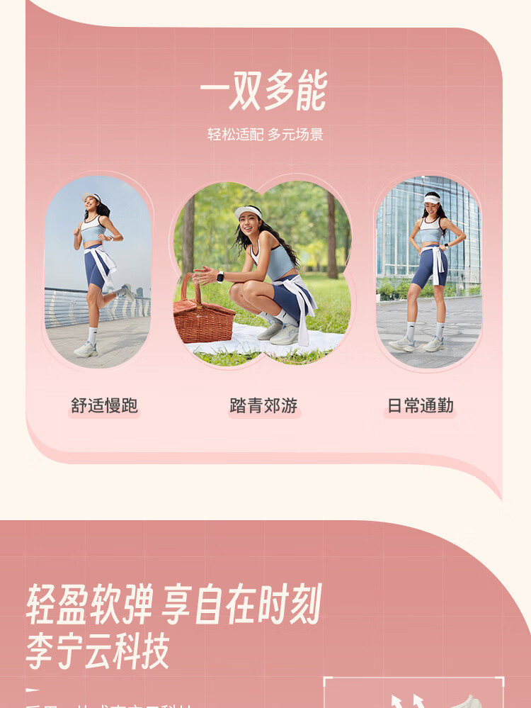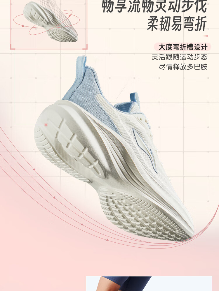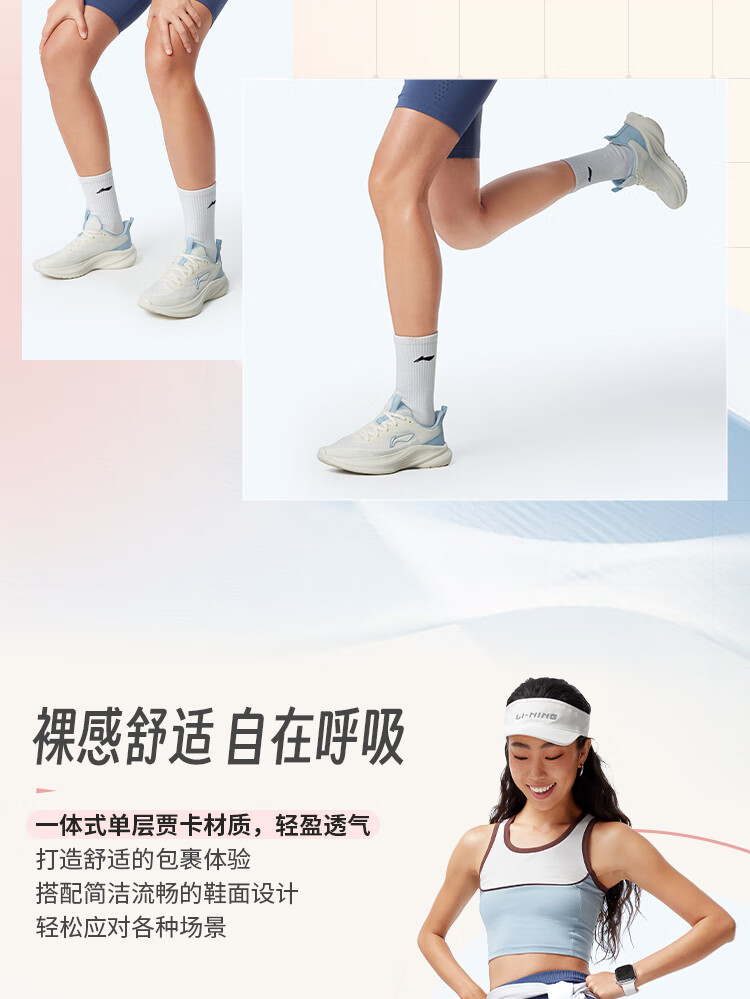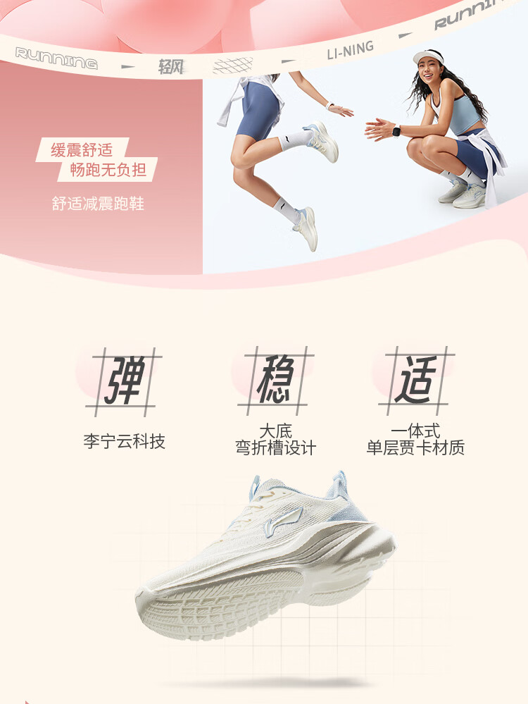 李宁 女 跑步鞋 ARSV108-5 轻风减震回弹休闲慢跑鞋 女鞋25新款跑跳自如跑步运动鞋