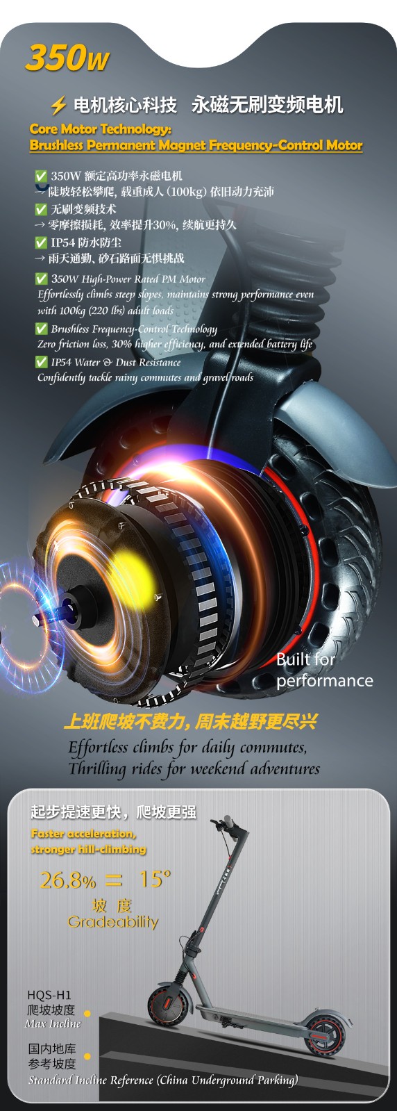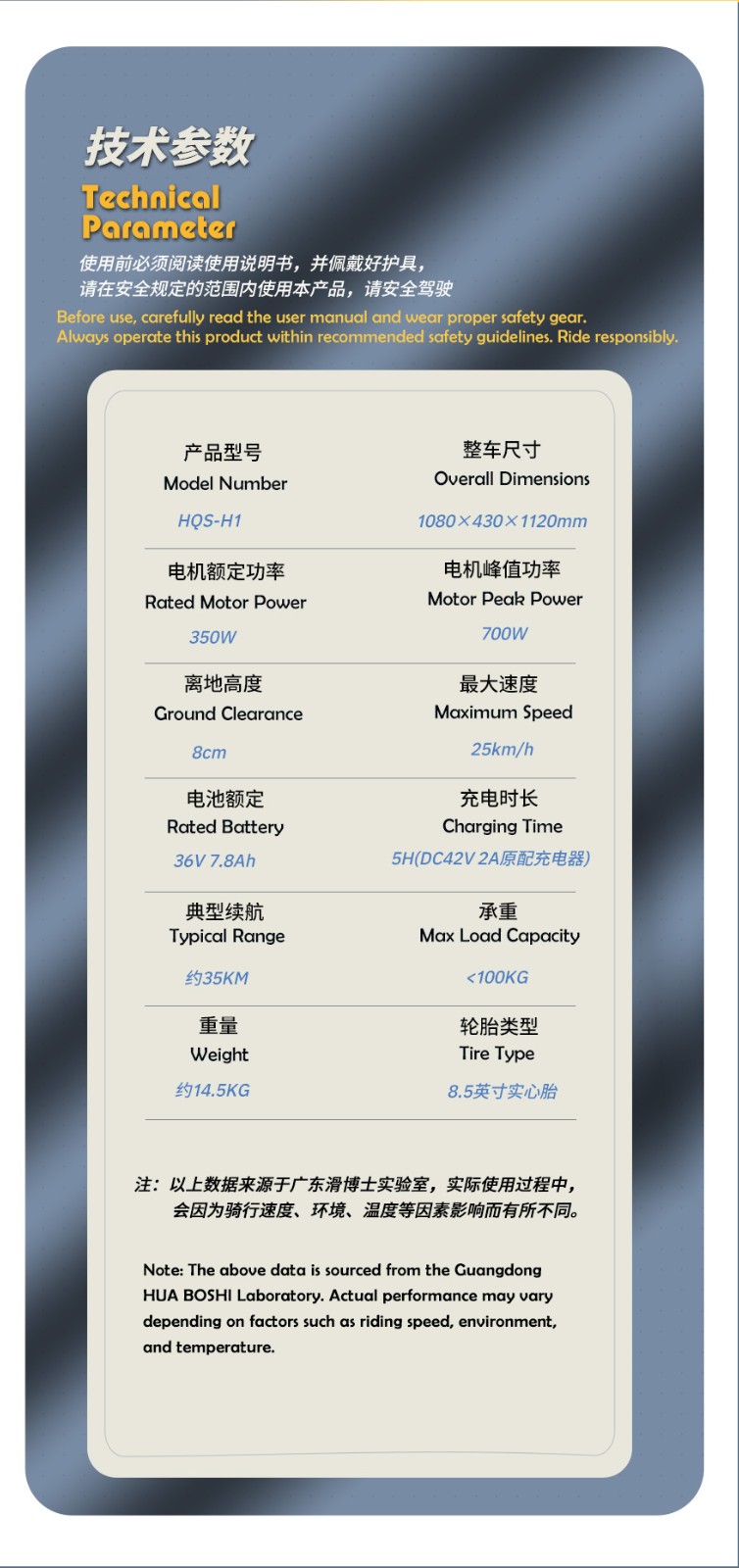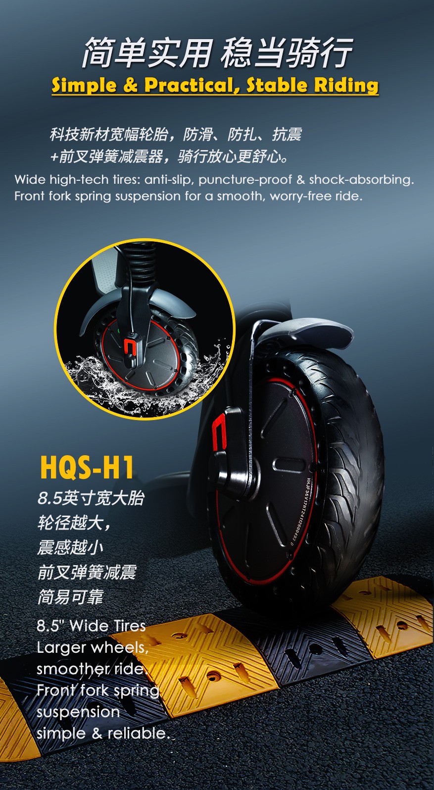 8.5英寸宽大胎,轮径越大,震感越小,