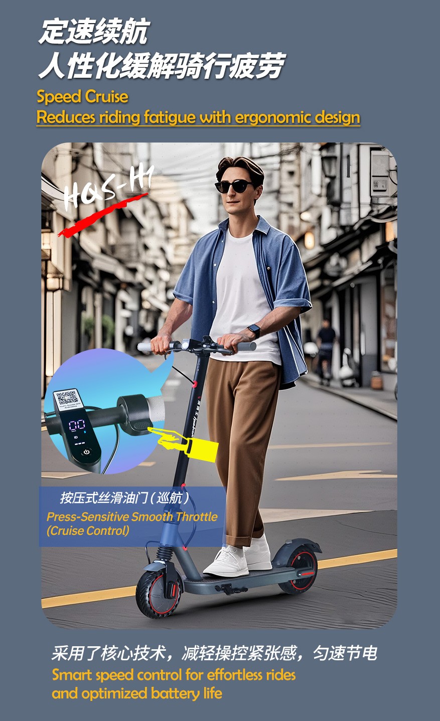 滑博士 电动滑板车 H1/8A 电动滑板车成人可折叠电动车 便携式代步长续航代驾车 踏板滑板车 两轮代步车 无刷变频电机 加宽实心胎 可折叠收纳