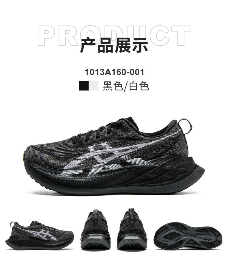 亚瑟士 跑步鞋 1013A160-001 黑色/白色 跑步鞋男 轻质透气回弹马拉松运动鞋 编织鞋面 清凉缓震材质 轻量橡胶大底
