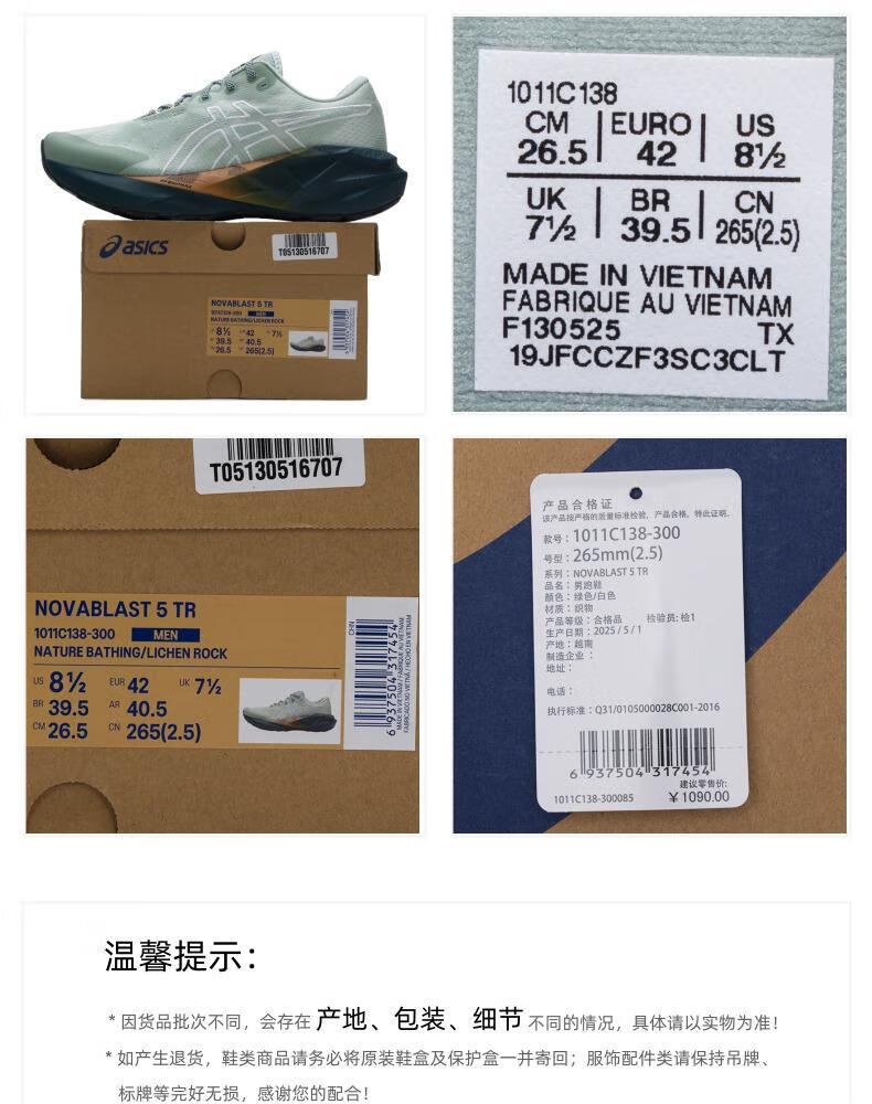 亚瑟士 男 跑步鞋 1011C138-300 男鞋 NOVABLAST 5 TR轻量缓震跑鞋 稳定支撑跑步运动鞋 柔软透气 泡棉中底 编织鞋面