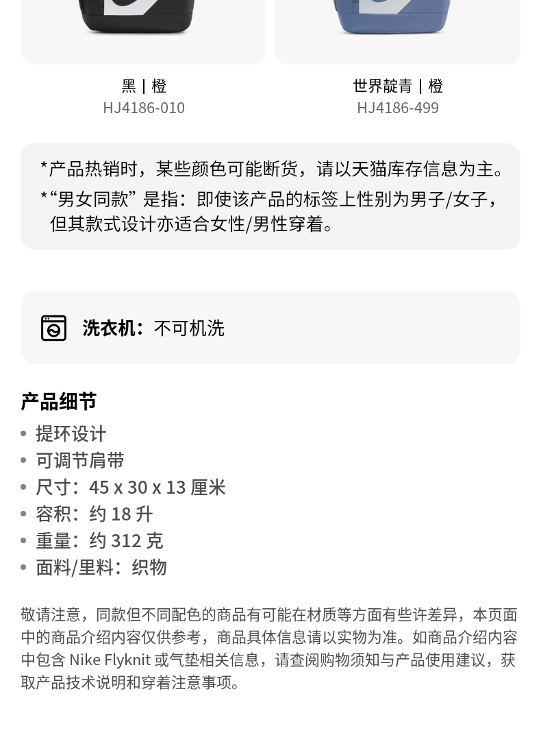 耐克 男女童儿童双肩包 HJ4186-010 秋季书包收纳拉链口袋宽敞 时尚百搭书包运动包 口贷宽敞 经典耐用 时尚百搭 男女同款