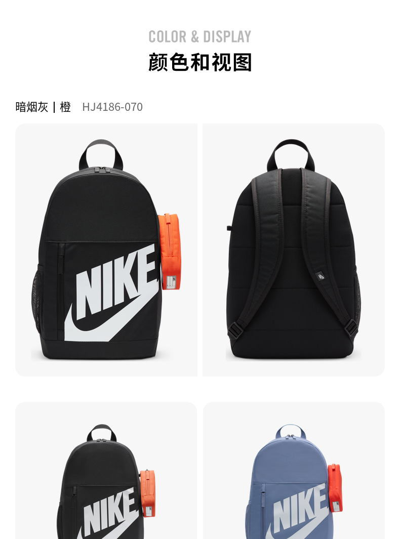 NIKE ELEMENTAL儿童双肩包采用宽敞主袋,