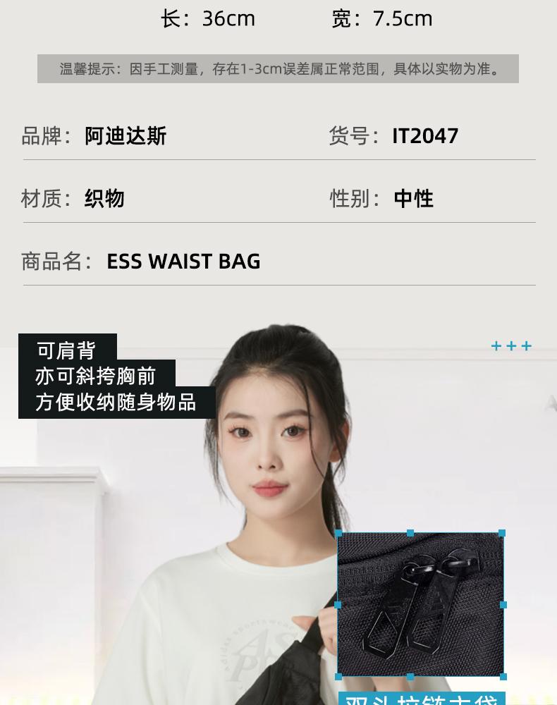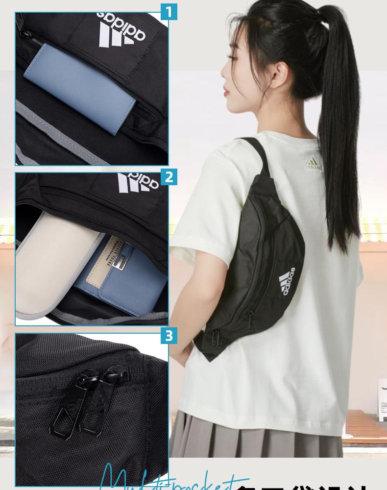Adidas阿迪达斯 腰包 夏季新款单肩包 跑步包 斜挎包 运动包 情侣胸包 IT2047 黑色