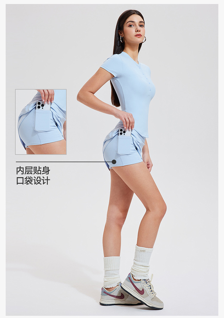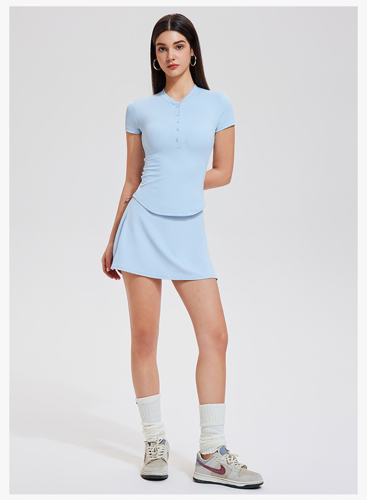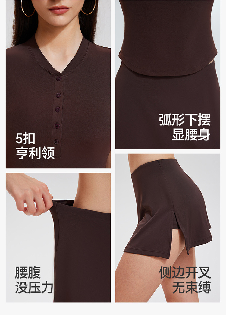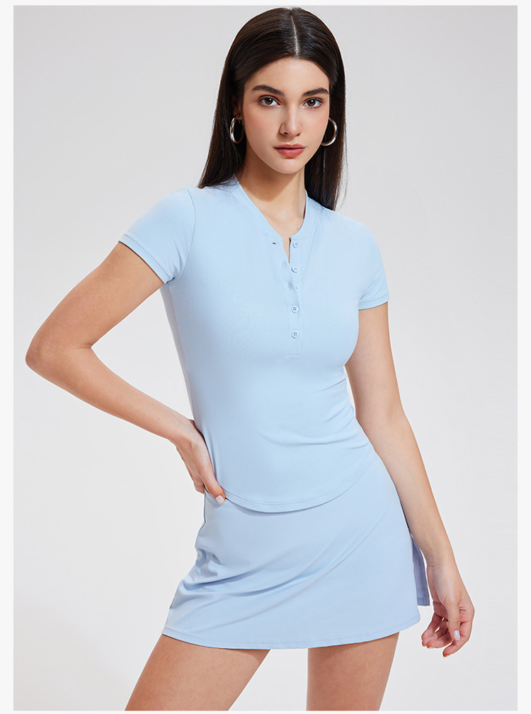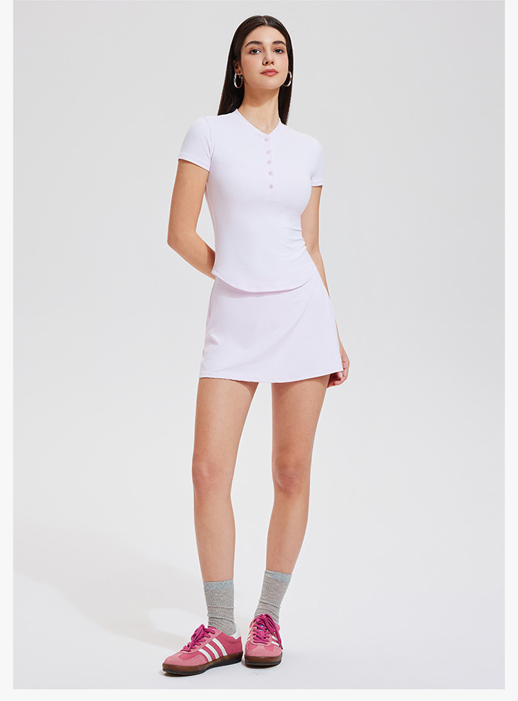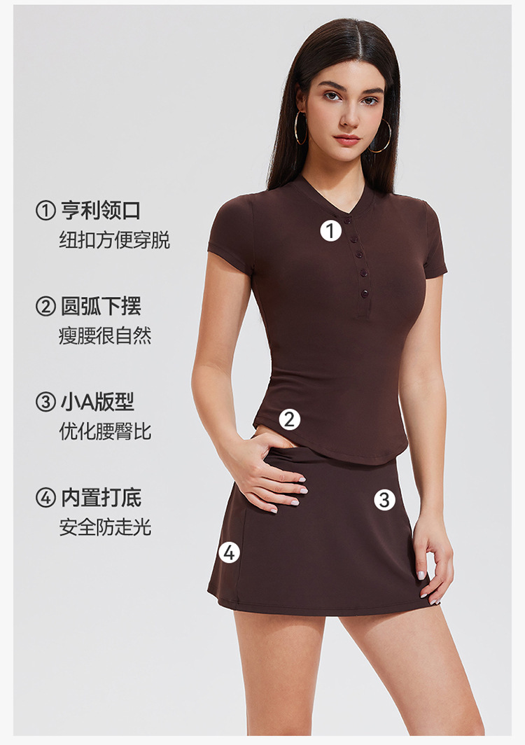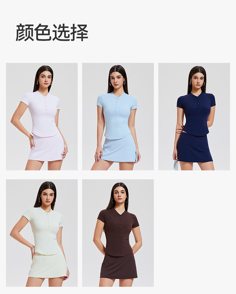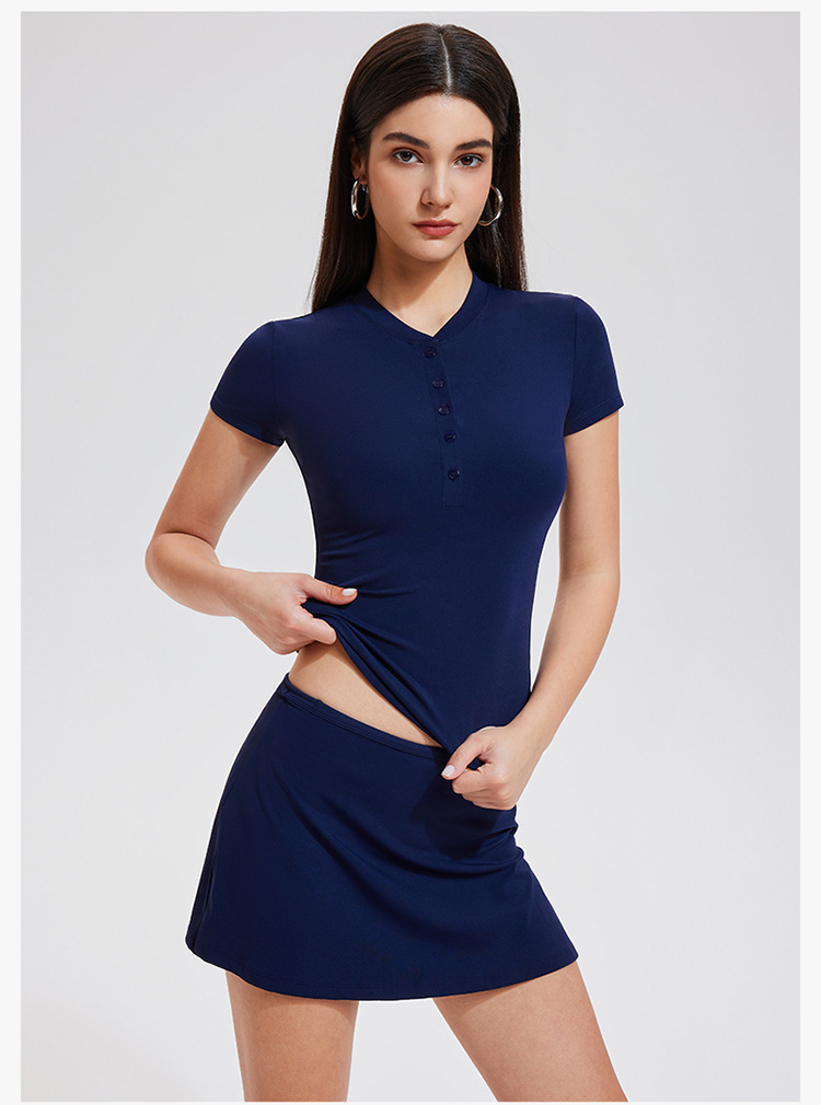 范斯蒂克 速干短裙运动套装女 TCD50003 纯色亨利衫短袖套装女夏