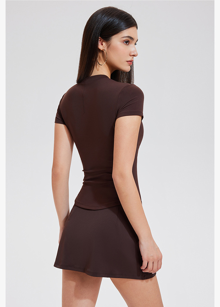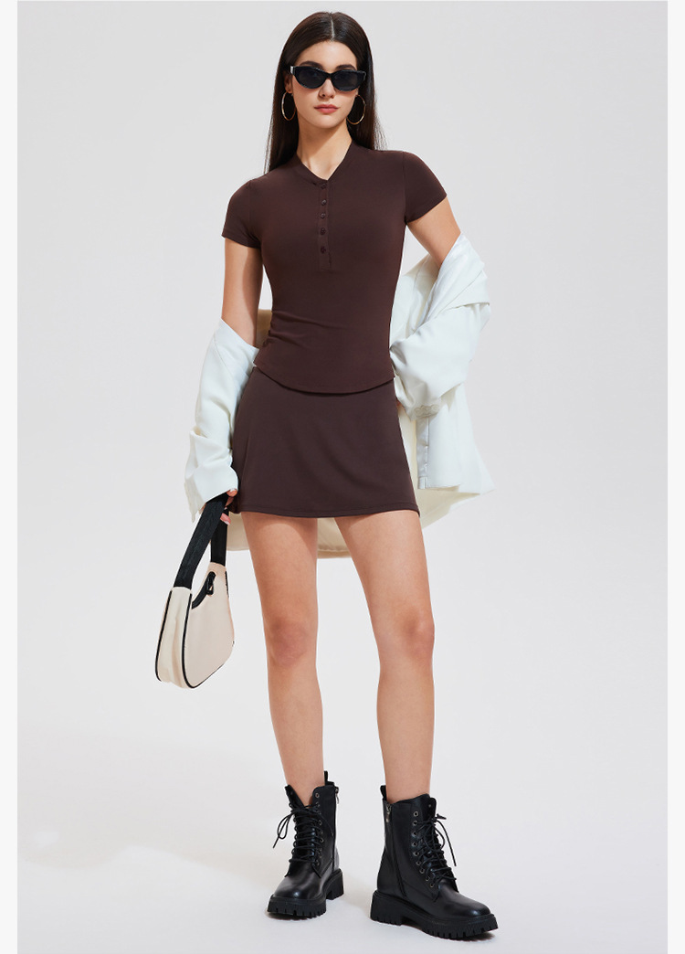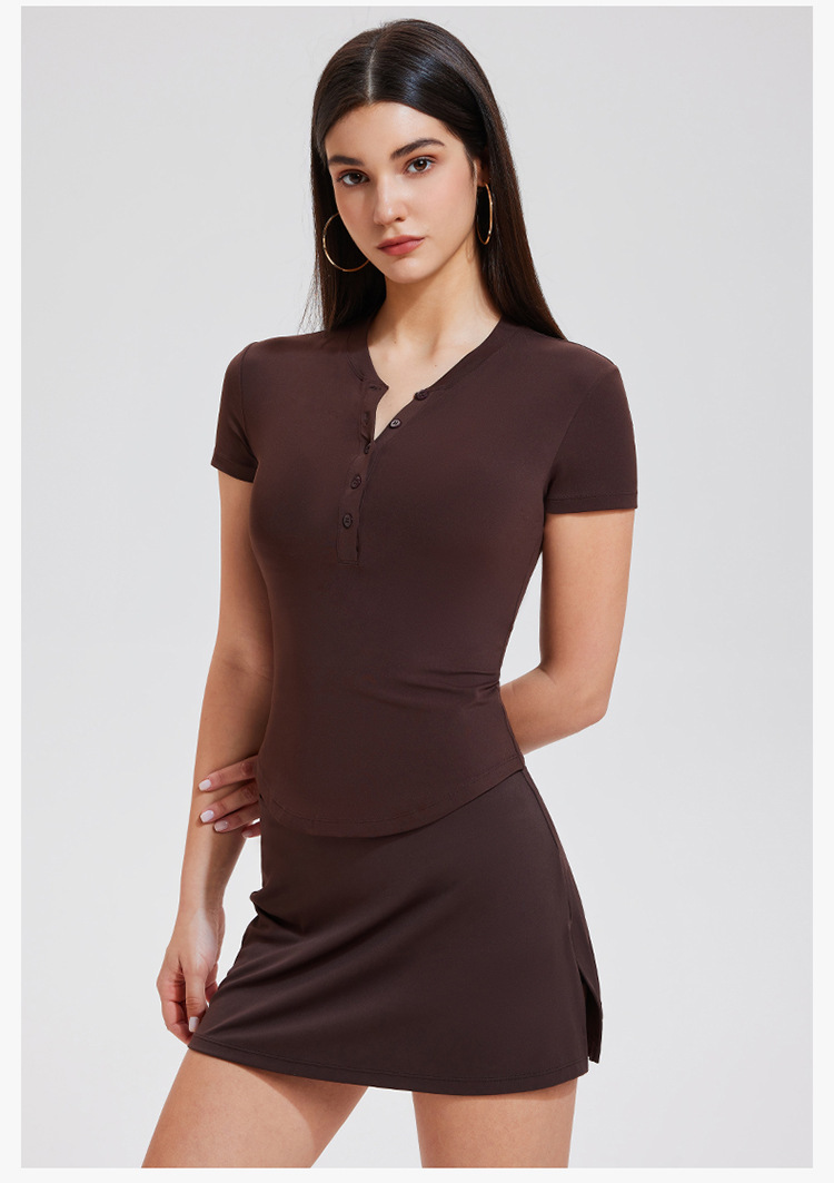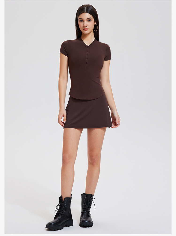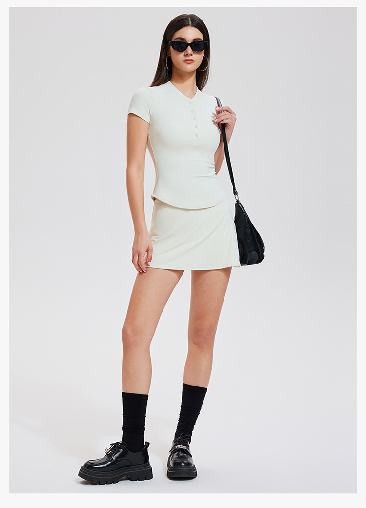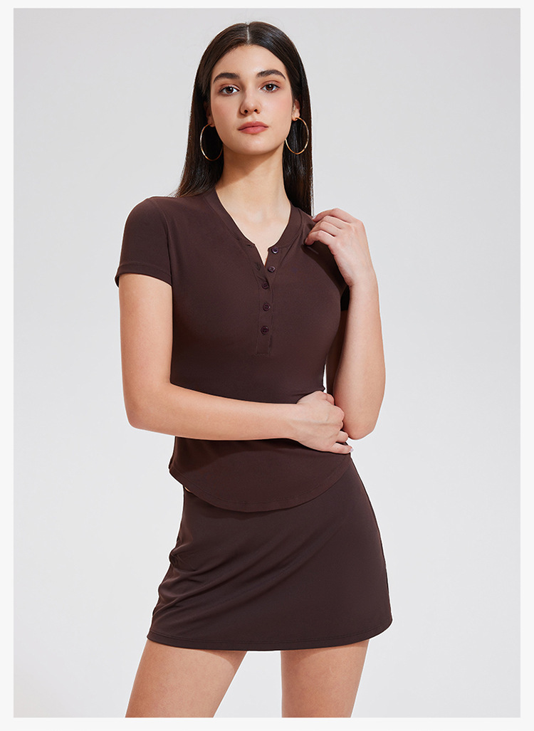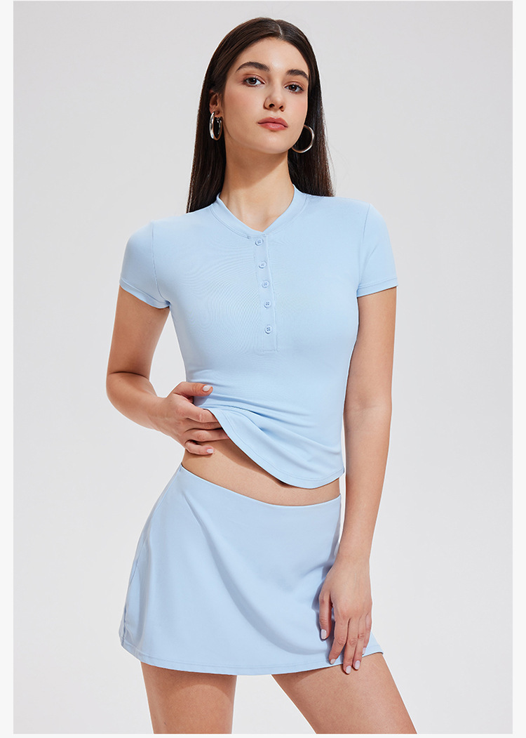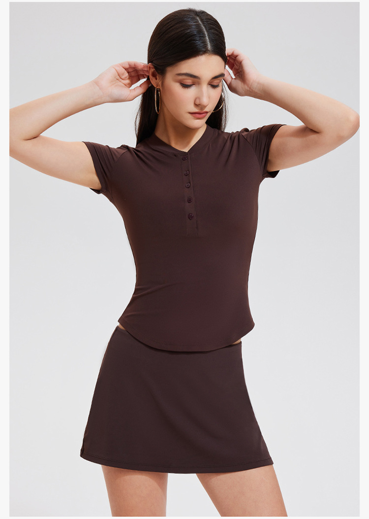 范斯蒂克 速干短裙运动套装女 TCD50003 纯色亨利衫短袖套装女夏
