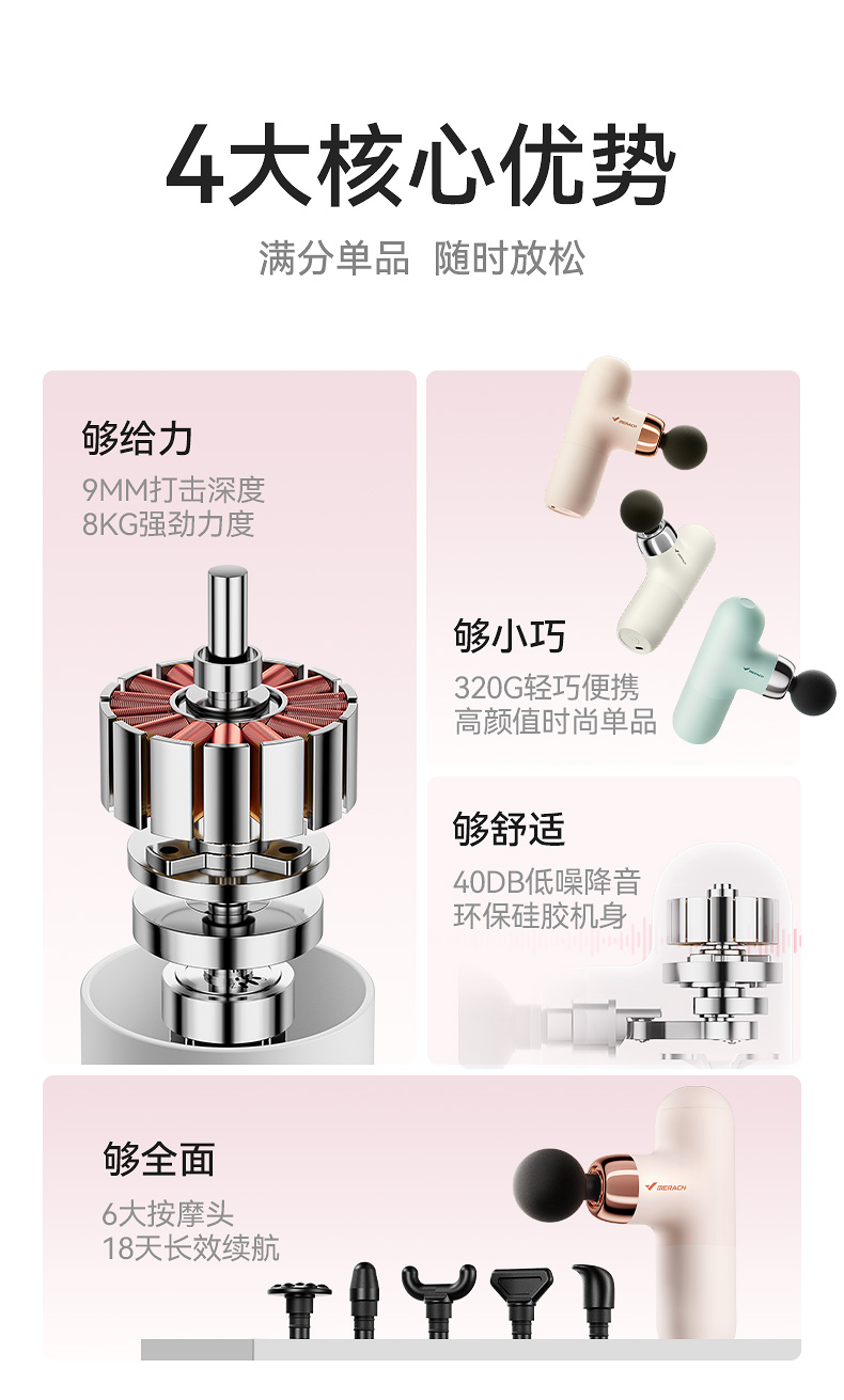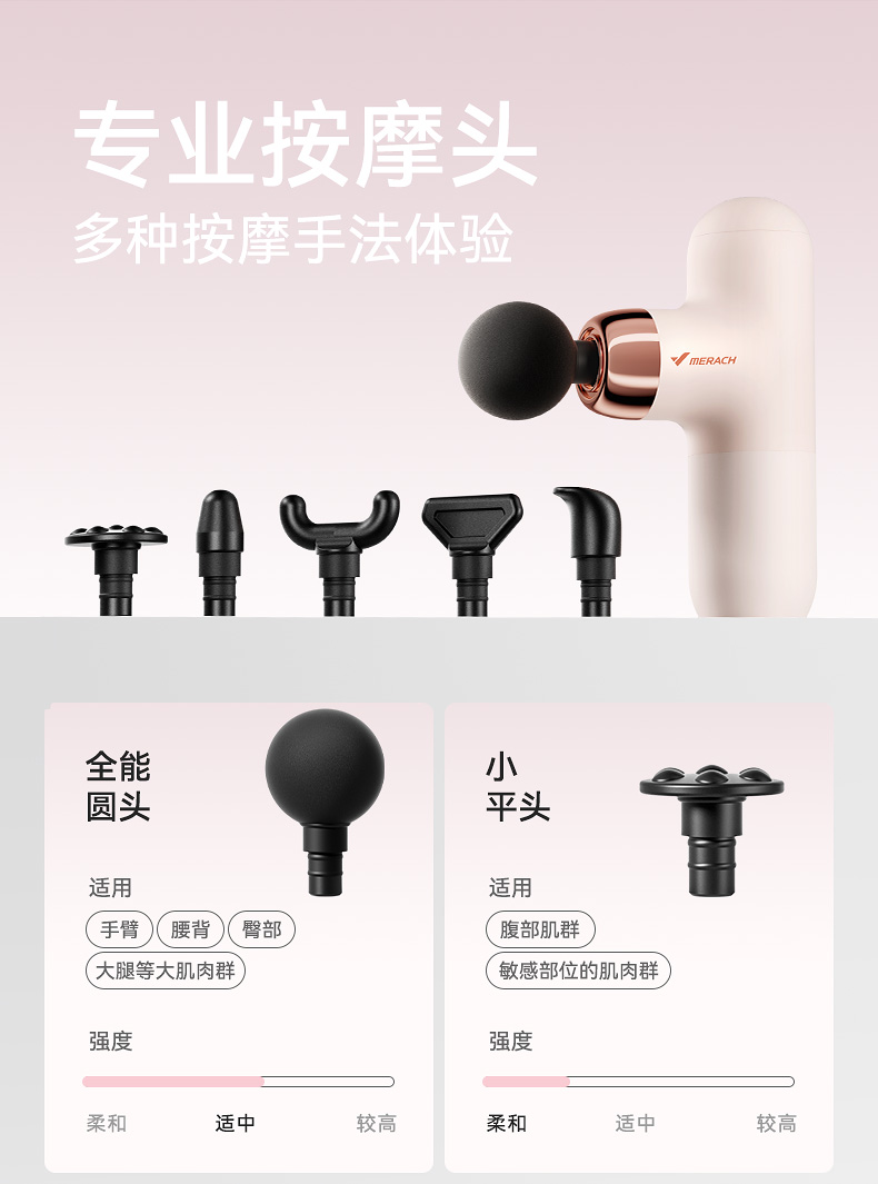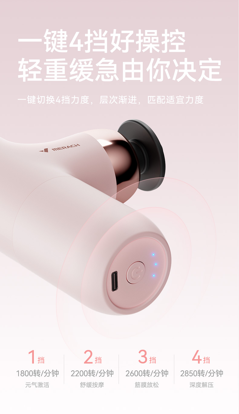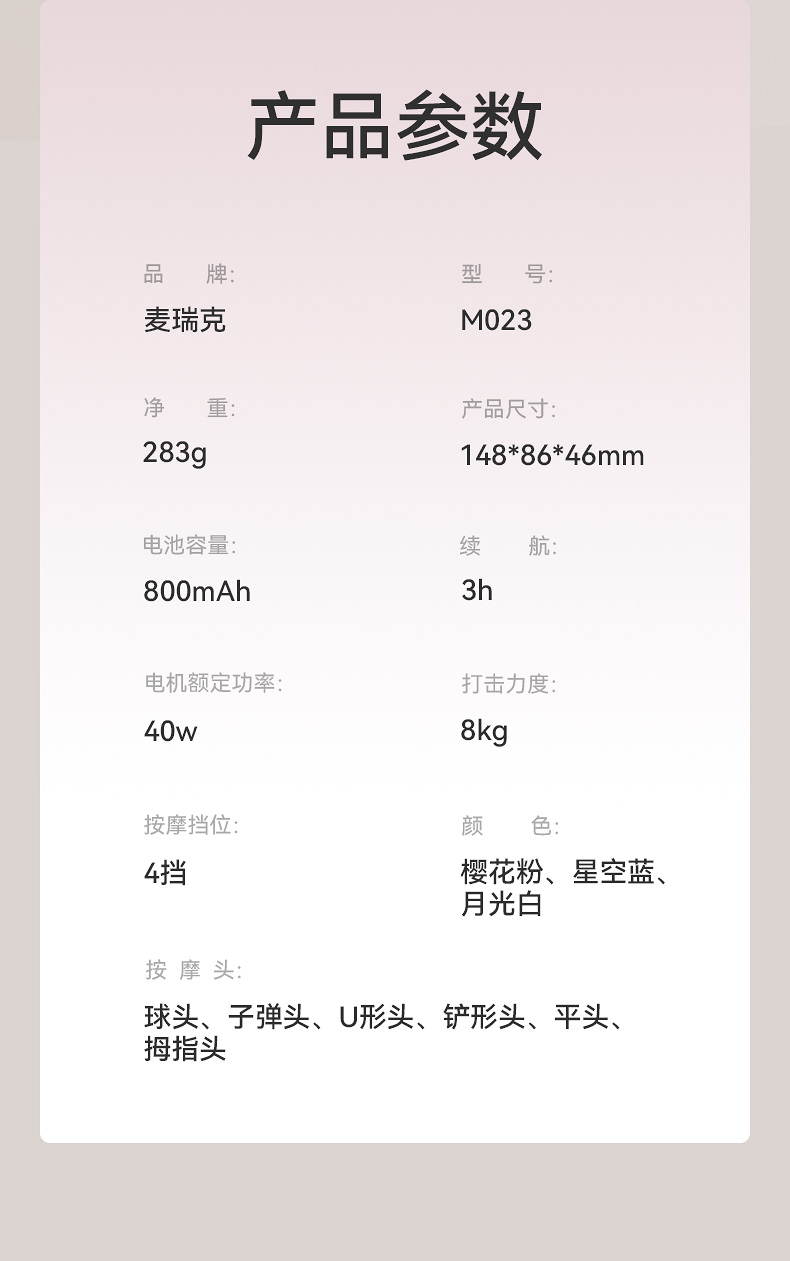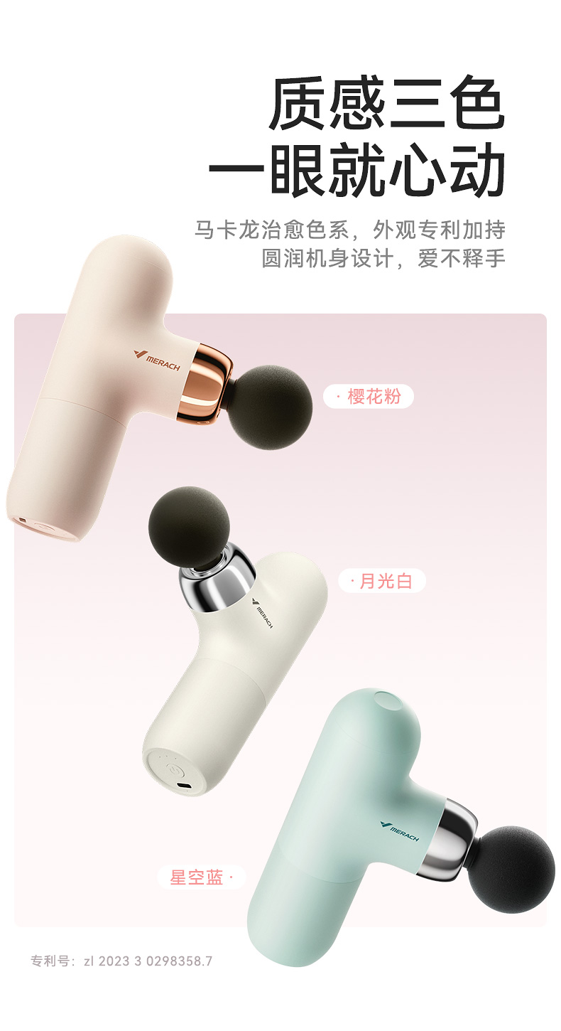 麦瑞克筋膜枪MR-M023 粉色白色蓝色 肌肉按摩器颈膜肌膜枪 多功能女生男士专用硅胶