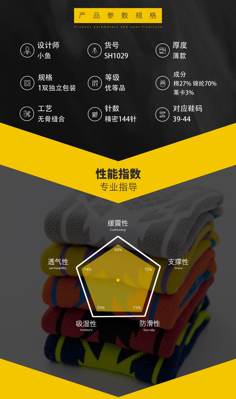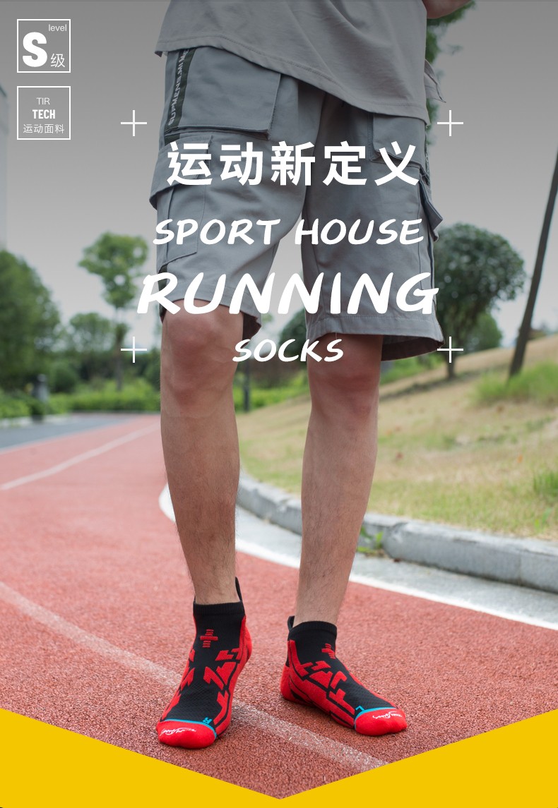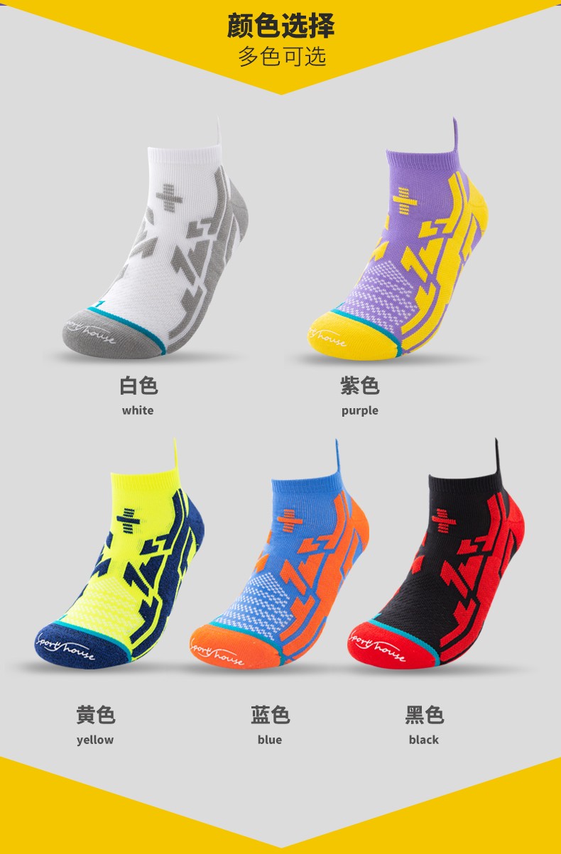 Sports House运动之家 马拉松袜 男士专业跑步袜 短筒夏季吸汗防臭袜 毛巾底压缩运动袜 SH1029 五色可选 三双装