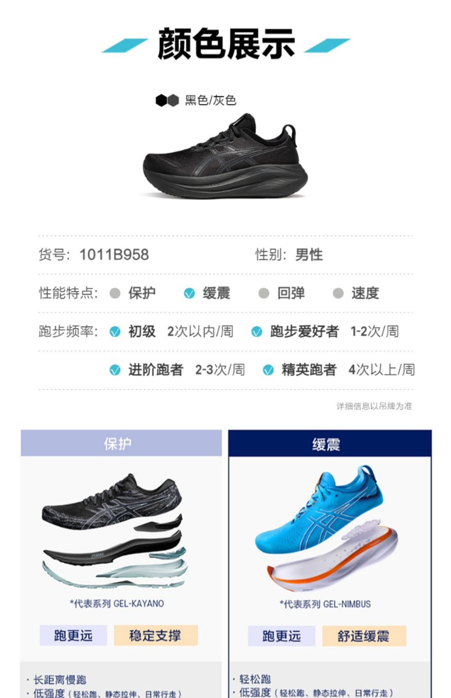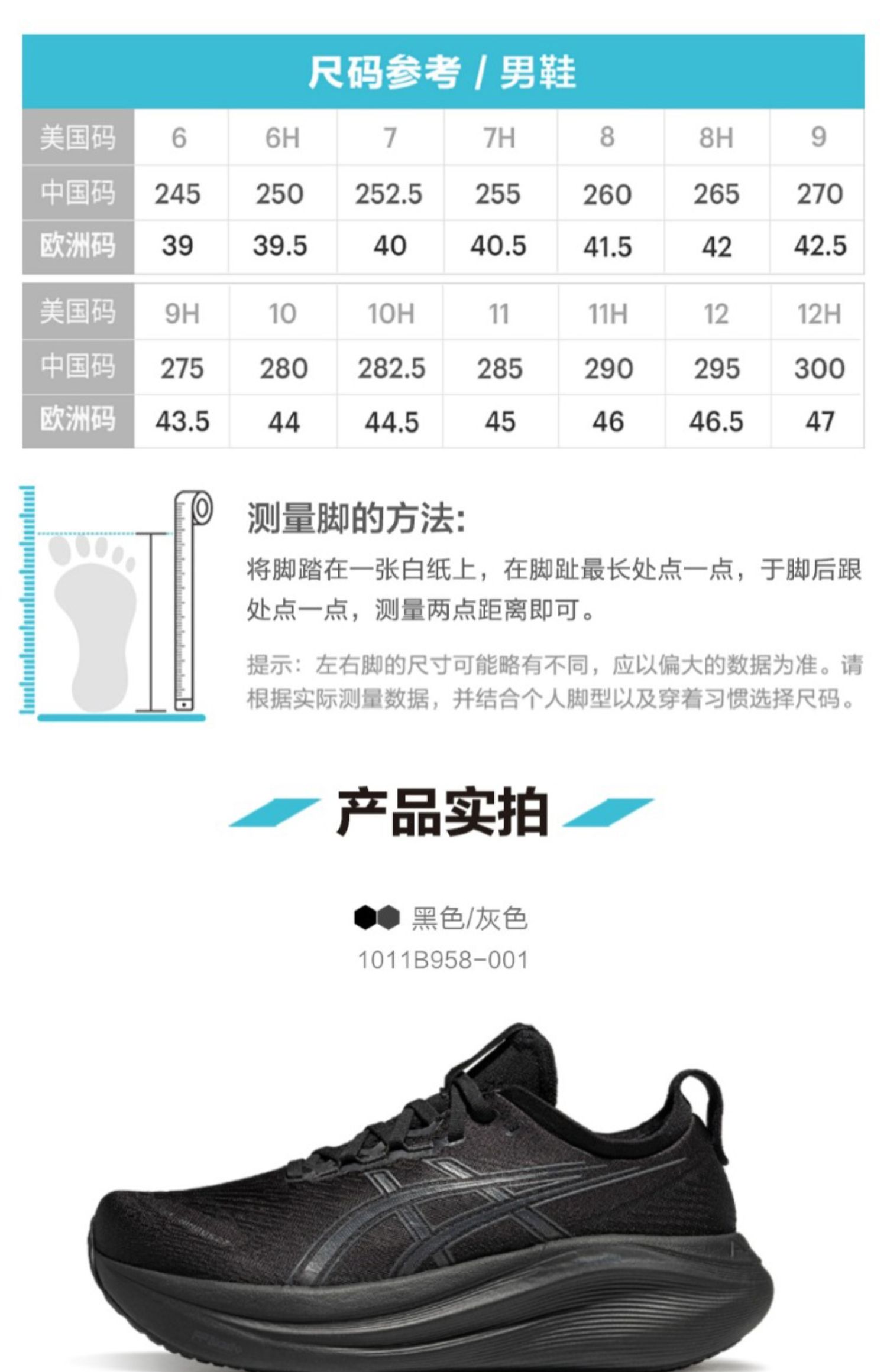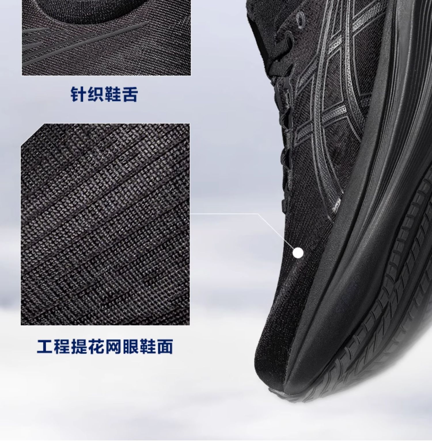 ASICS亚瑟士 男跑步鞋 GEL-NIMBUS 27男子透气跑步鞋 缓震耐磨专业训练运动鞋 1011B958-001 黑色/灰色