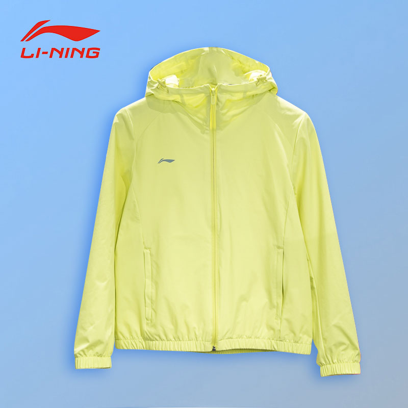 LINING李宁 女款防风外套 跑步外套 女士运动风衣 休闲轻薄透气冰丝连帽风衣 AFDU626-5 黄萤绿