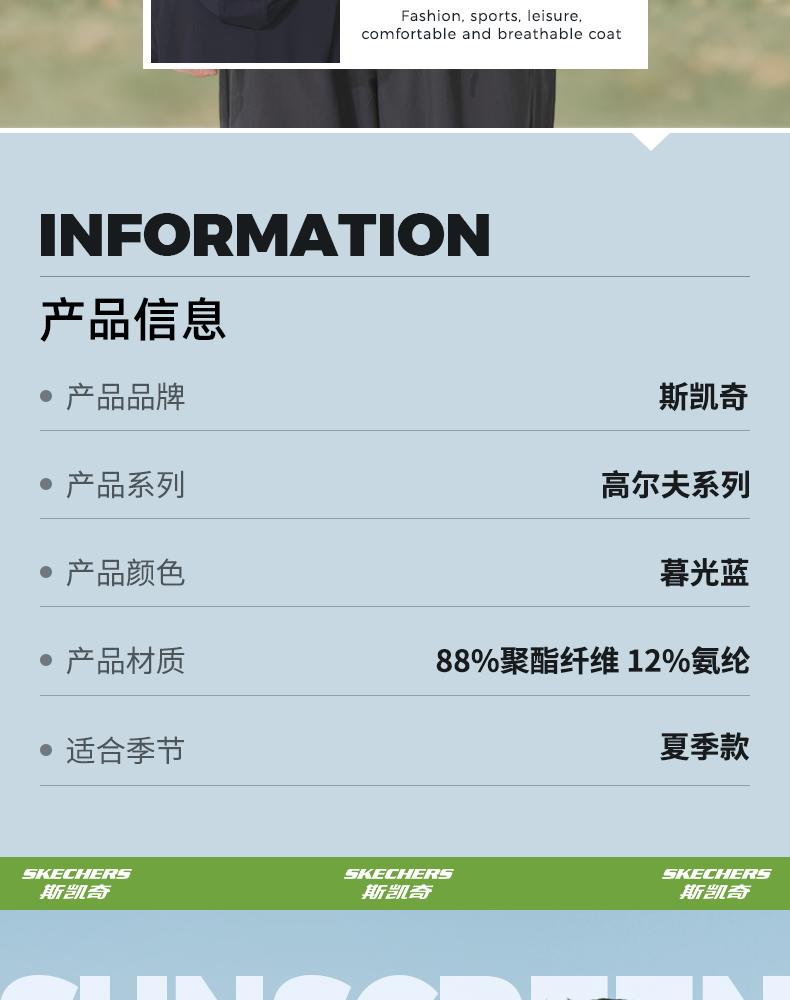 SKECHERS斯凯奇 防晒外套 男女同款2025新款连帽运动服 休闲上衣夹克 皮肤衣 P225U130-0515 暮光蓝