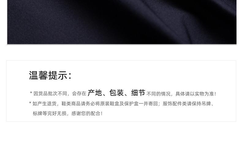 2)七天退换保障:自您签收商品后7天内,因尺码不合适,货品外观大小,颜色,形状的感受偏差,订购错误等,在商品未使用、未拆毁包装、未剪掉或丢失吊卡说明书等不影响二次销售的情况下,可以为您退换商品(下文中说明的不能退换的商品除外)。