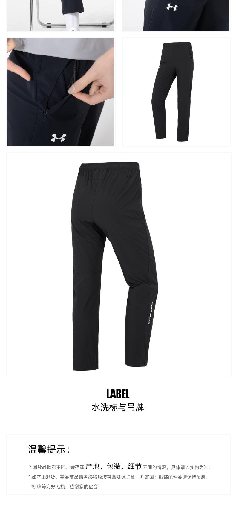 Under Armour安德玛 女梭织长裤 高腰运动休闲裤 跑步长裤 户外运动裤 健身束脚裤 22500710-001 黑色