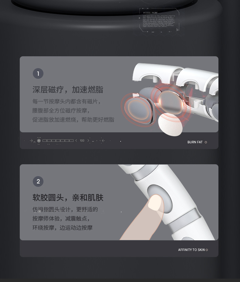 深层磁疗,加速燃脂,每一片按摩头内部含有磁片,腰腹部全方位磁疗按摩;
