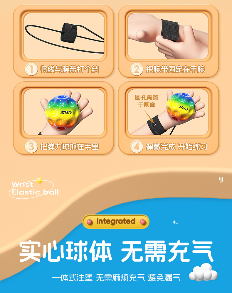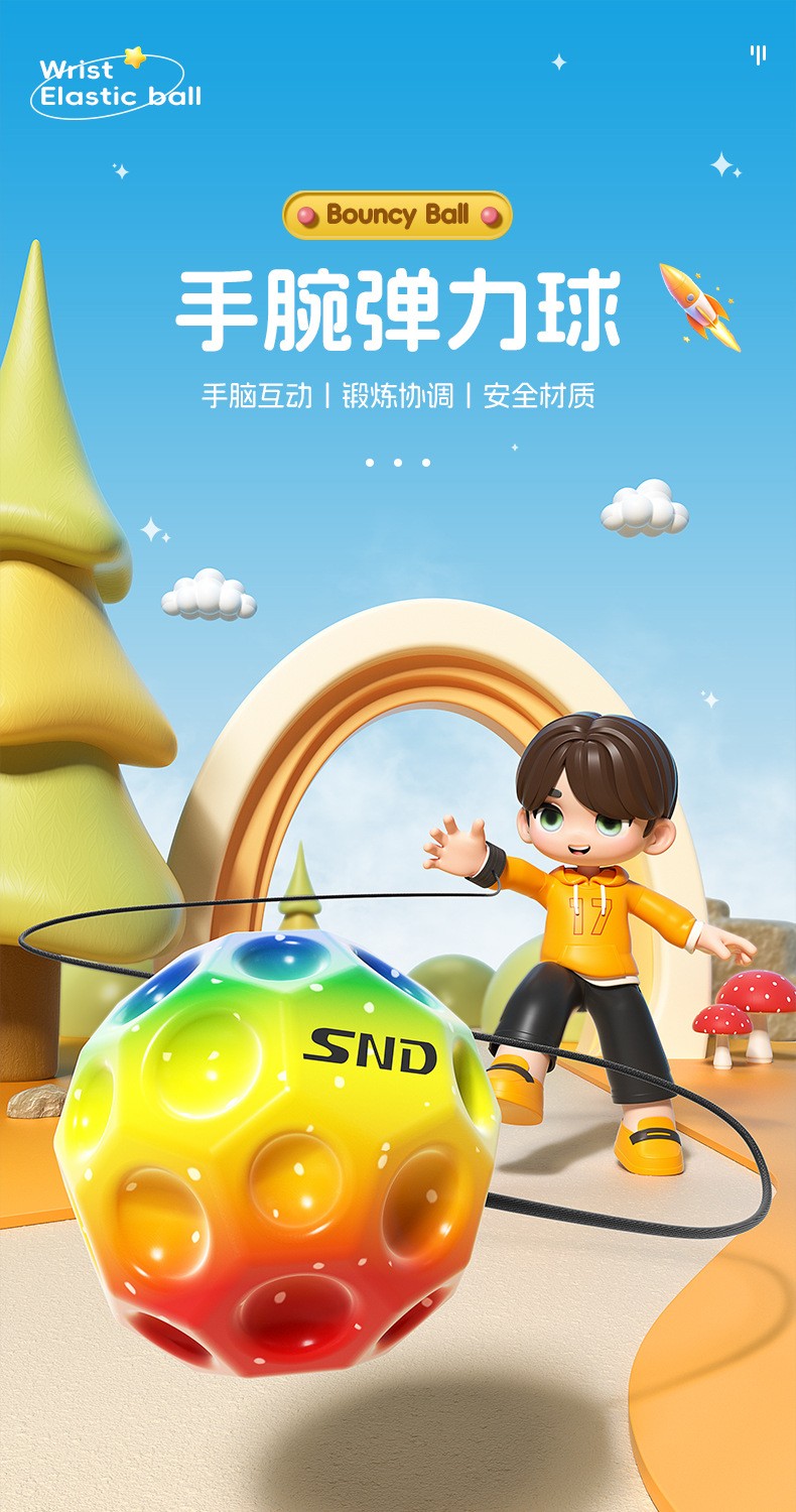 SND施耐德甩甩球 手腕洞洞球 儿童玩具 回力弹弹球 发泡月球石 益智亲子互动解压 SSQ-514 本品参加11.11开门红满129减20 299减50 499减80 999减150 1299减200元大促!