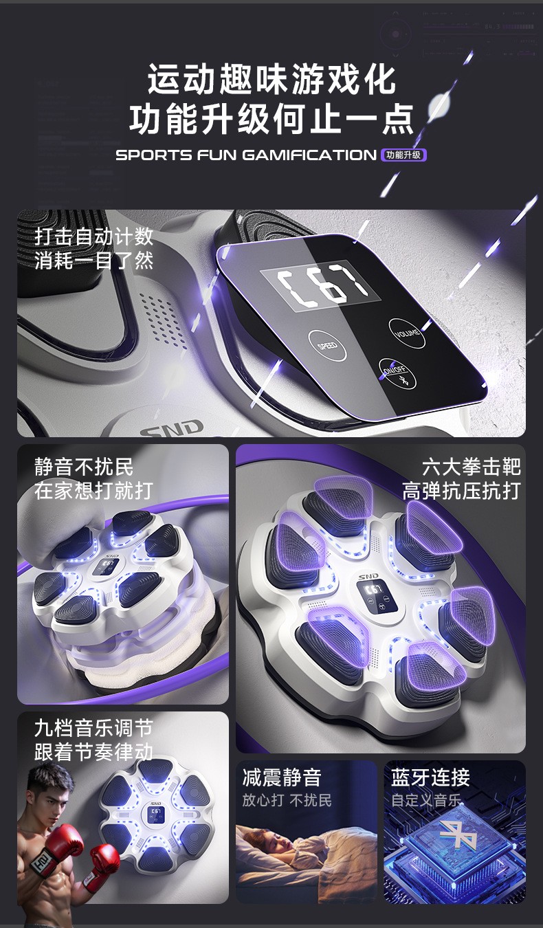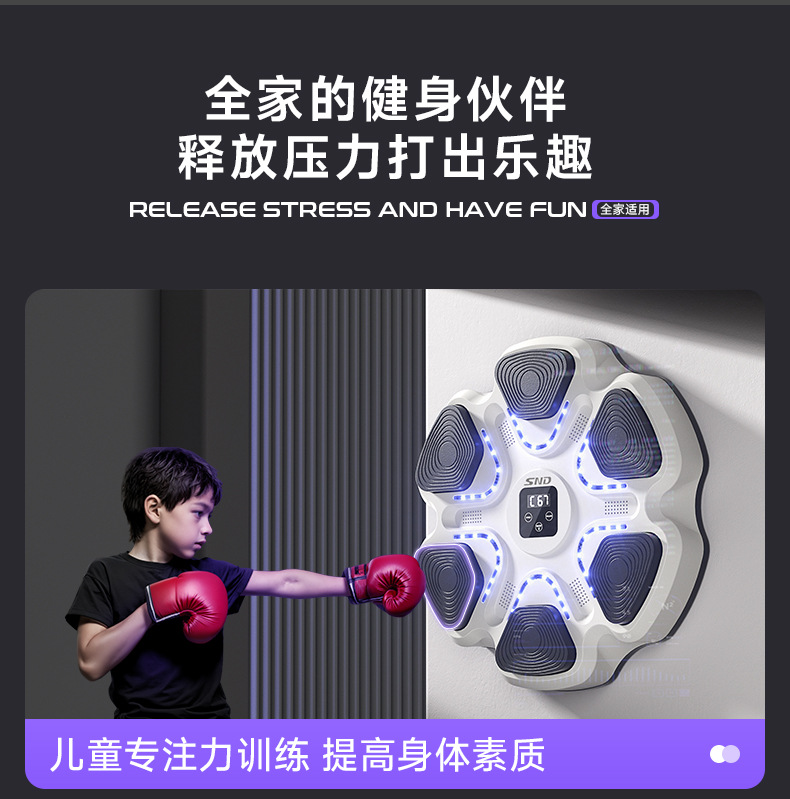 智能灯光加音乐节奏真的太酷了,跟着节奏去击打真的很解压,小孩子比较爱玩音游游戏,所以看到这个音乐拳击机果断下单了,不仅可以玩还可以锻炼小朋友的反应能力,。质量也很稳定,挺好的,物流快,服务好,宝贝质量不错,整体来说性价比很高!