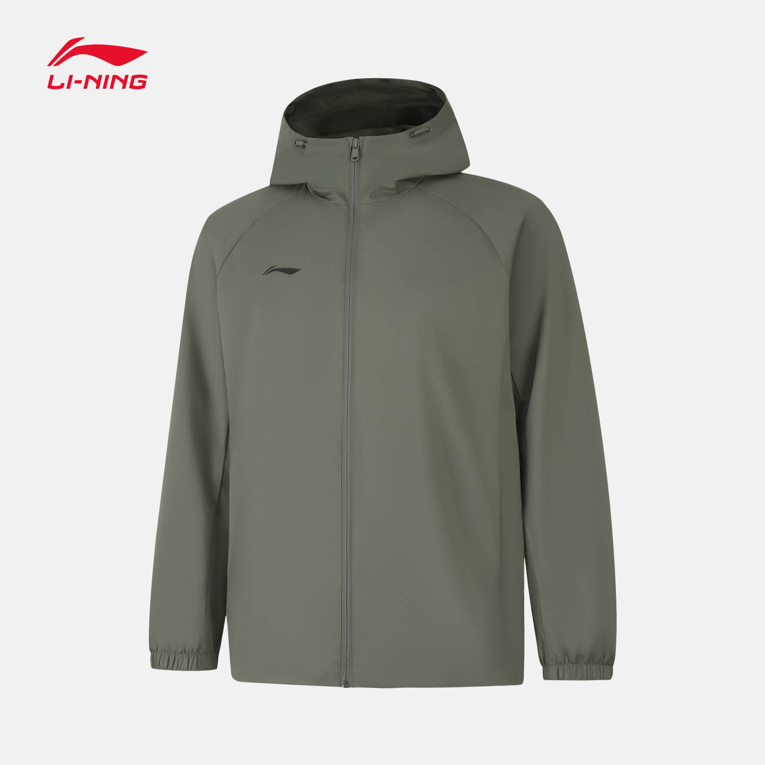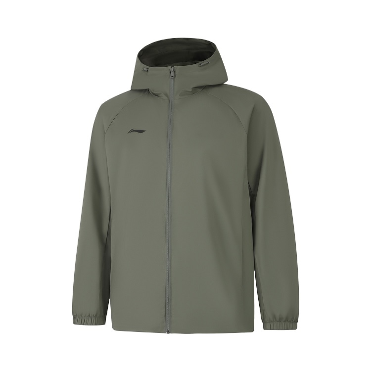 LINING李宁 男士风衣 跑步外套 2025新款开衫长袖外套 连帽梭织运动服 AFDV957-8 茗茶绿