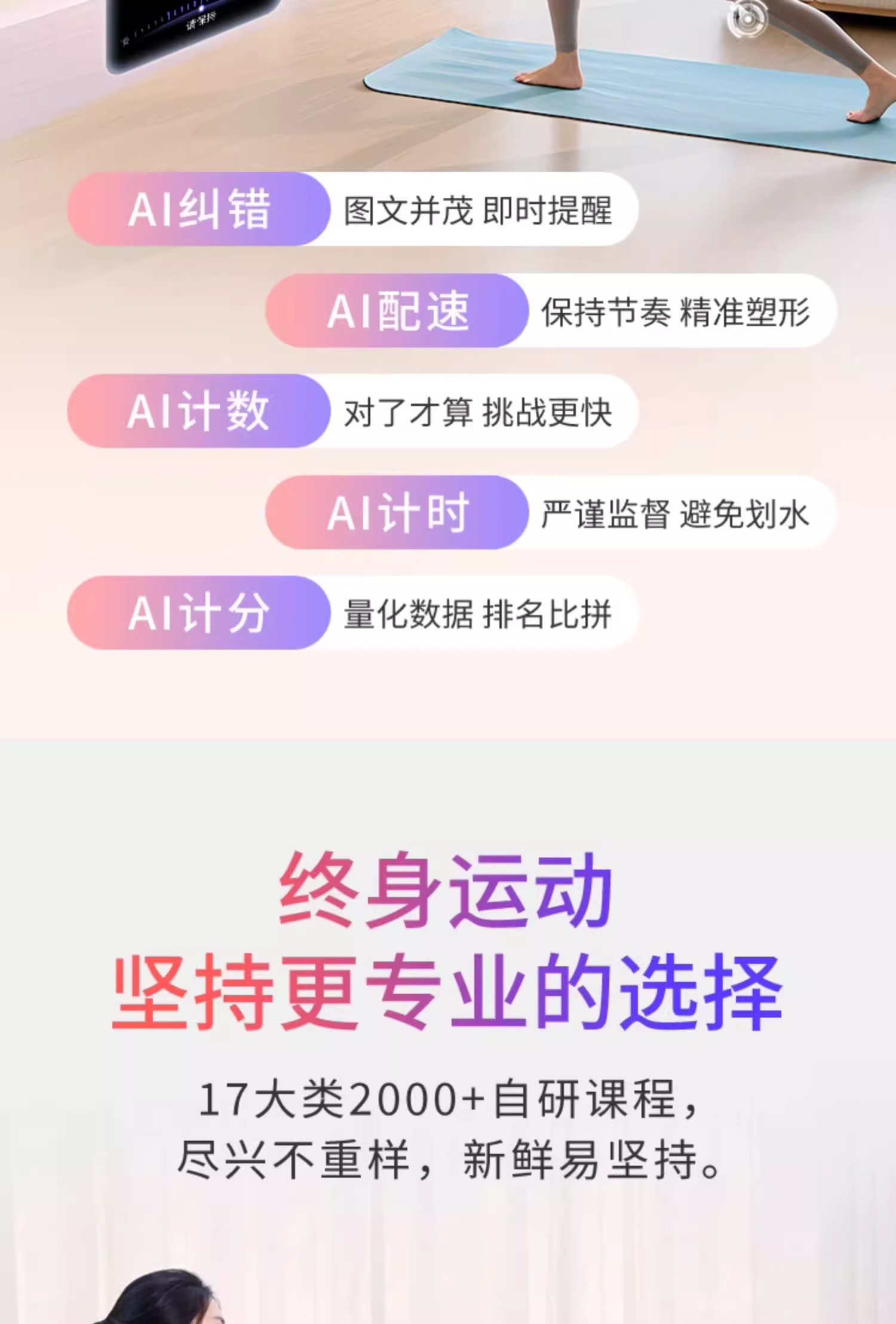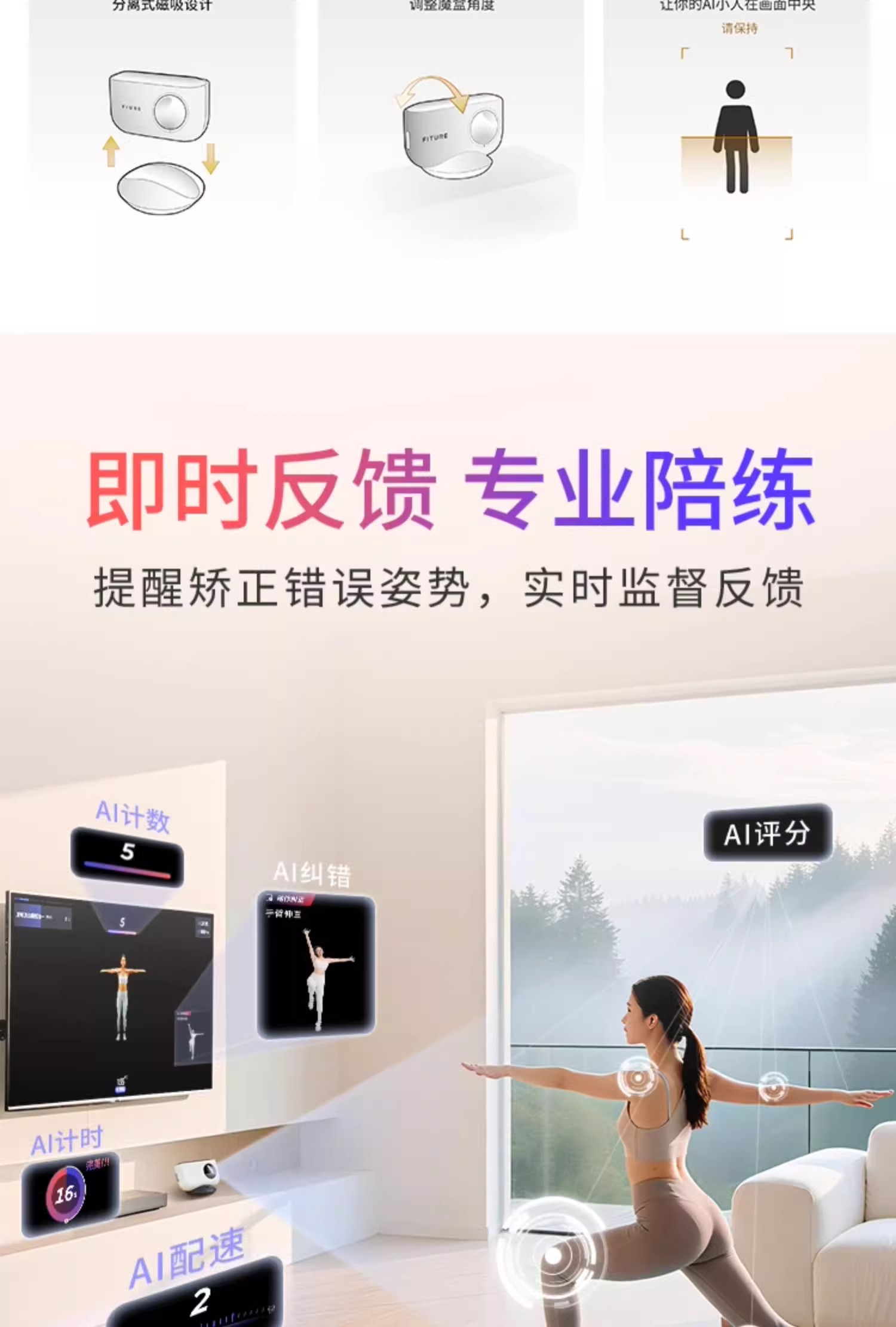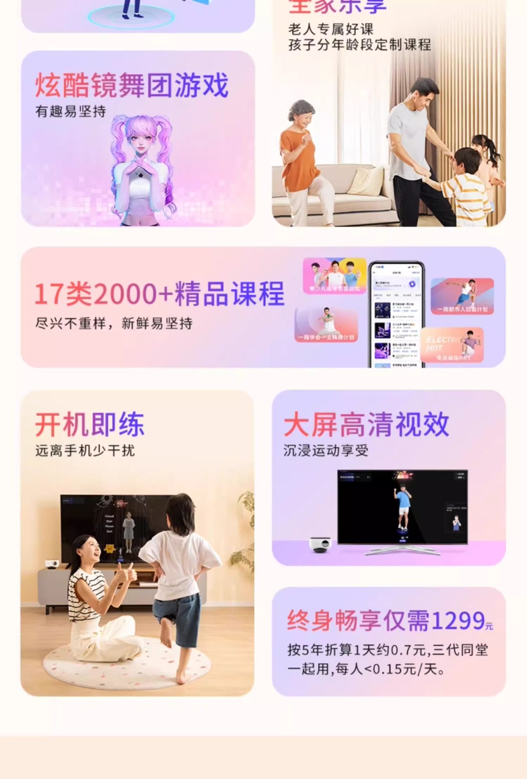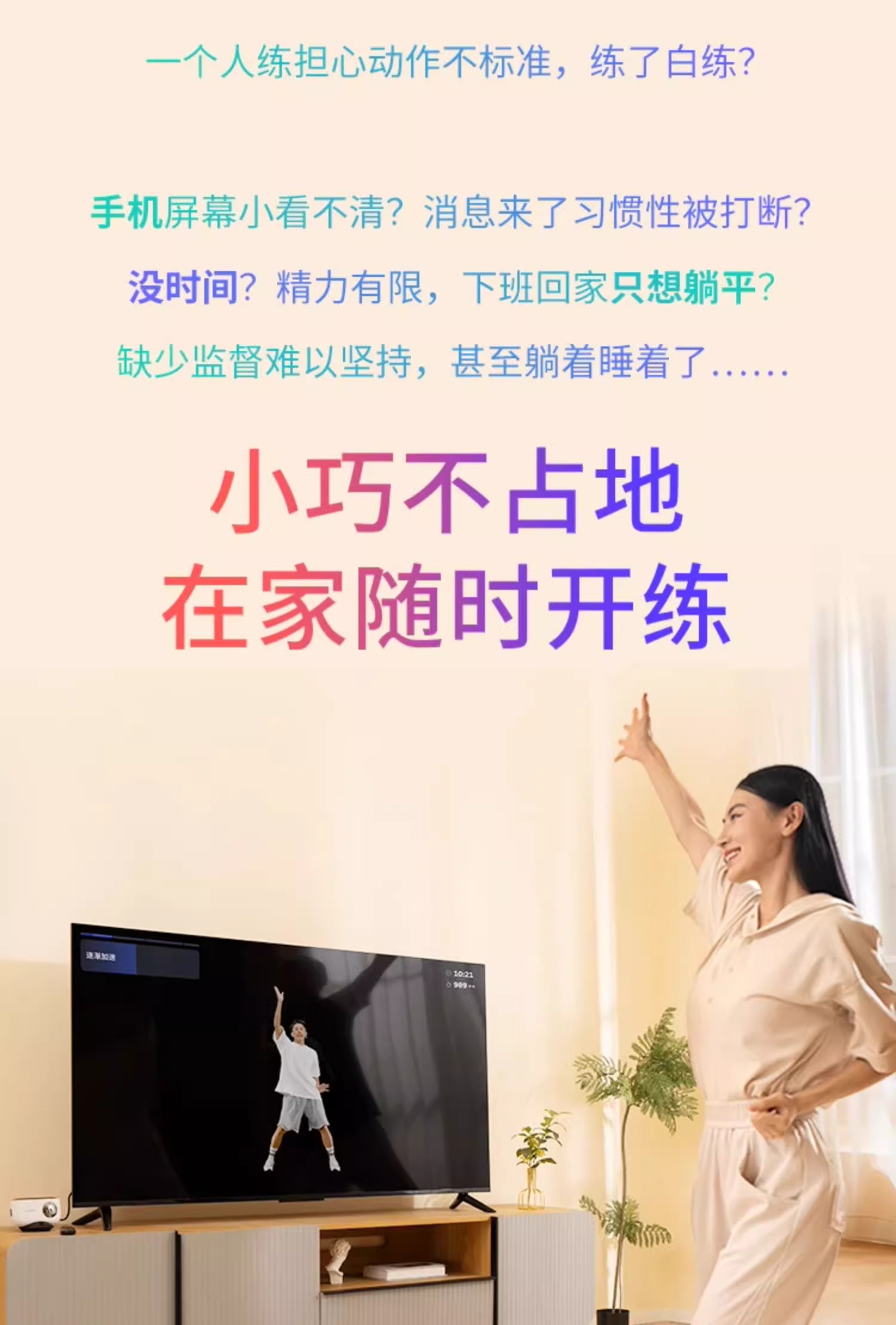 设备小巧精致,课程丰富,图像高清。 开机升级好系统就开始了燃脂练习,不喜欢去室外,室内就能全家运动很不错~