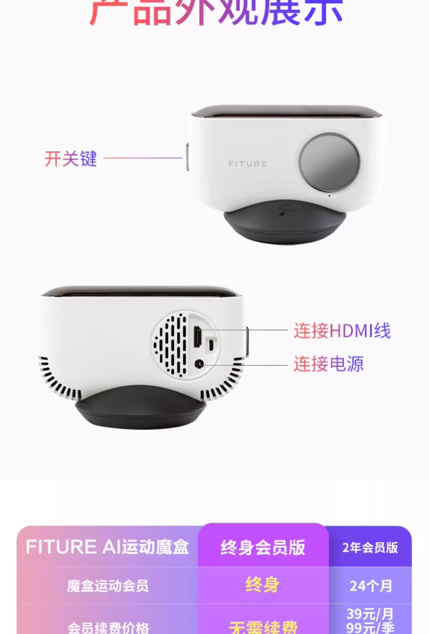 FITURE 魔镜 AI健身魔盒 健身镜 智能体感运动 主机游戏跳舞机 家用健身设备 终身会员版 AI交互海量课程 小巧不占地 不止专业练 还能畅快玩