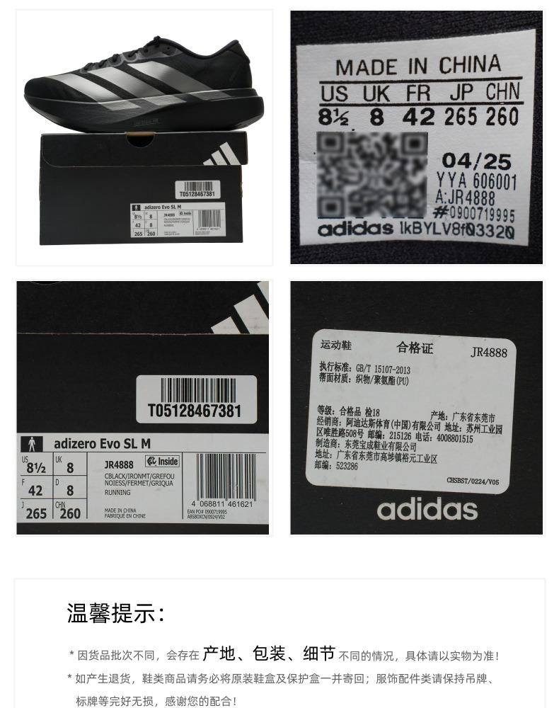 ADIDAS阿迪达斯 男竞速跑鞋 马拉松跑鞋 户外慢跑鞋 轻便透气运动鞋 JR4888 黑色/亮金属铁灰/灰