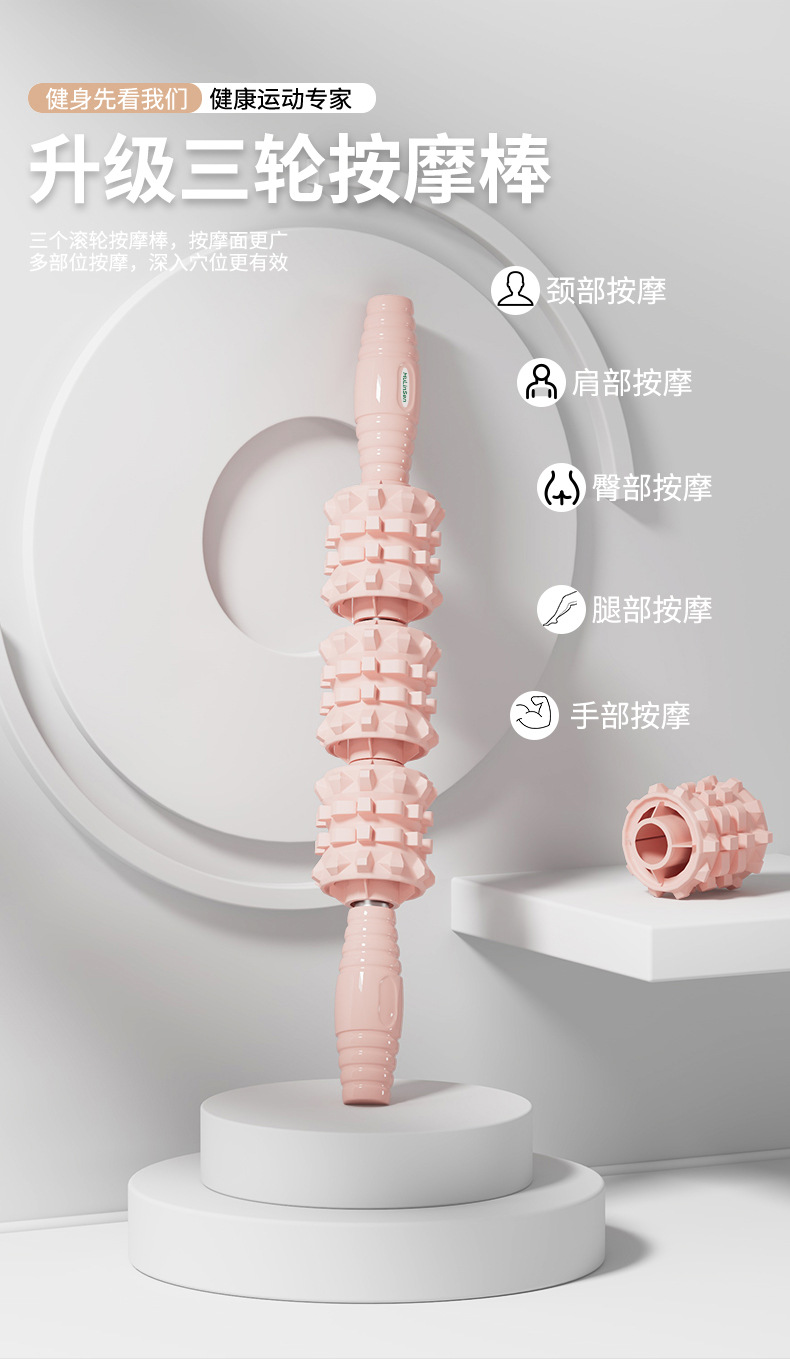 三梵M8-刺珠按摩棒-3球简装 F1EA3 34.5*5 狼牙棒瑜伽按摩滚轮 腿部肌肉放松器 手持筋膜滚轴 经络疏通瘦腿神器 缓解疲劳 防滑手柄 不伤肌理