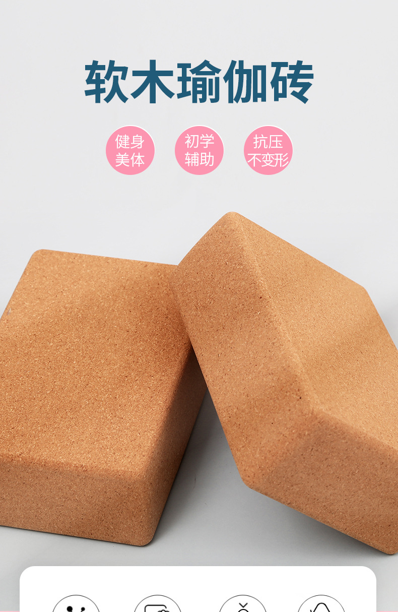 三梵 软木砖 F1B31 23*15*7.5 天然软木瑜伽砖 成人瑜伽馆专用砖 高密度瑜伽砖辅助工具 触感舒适稳定支撑 环保耐用 简约设计