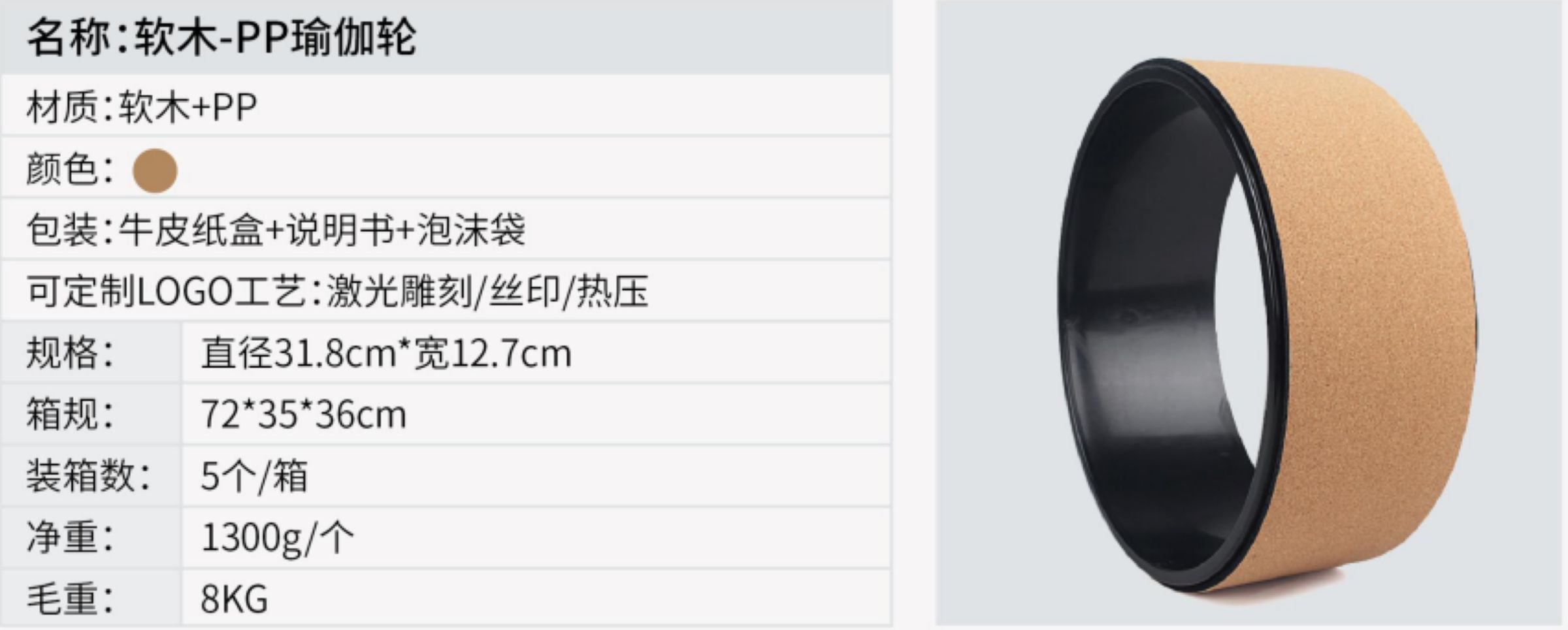 三梵 软木轮(黑框)F2C4 33*13 软木瑜珈轮 轻奢天然橡胶软木瑜珈轮 防滑高硬度不变形 瑜伽环健身普拉提圈 环保材质 柔韧防滑