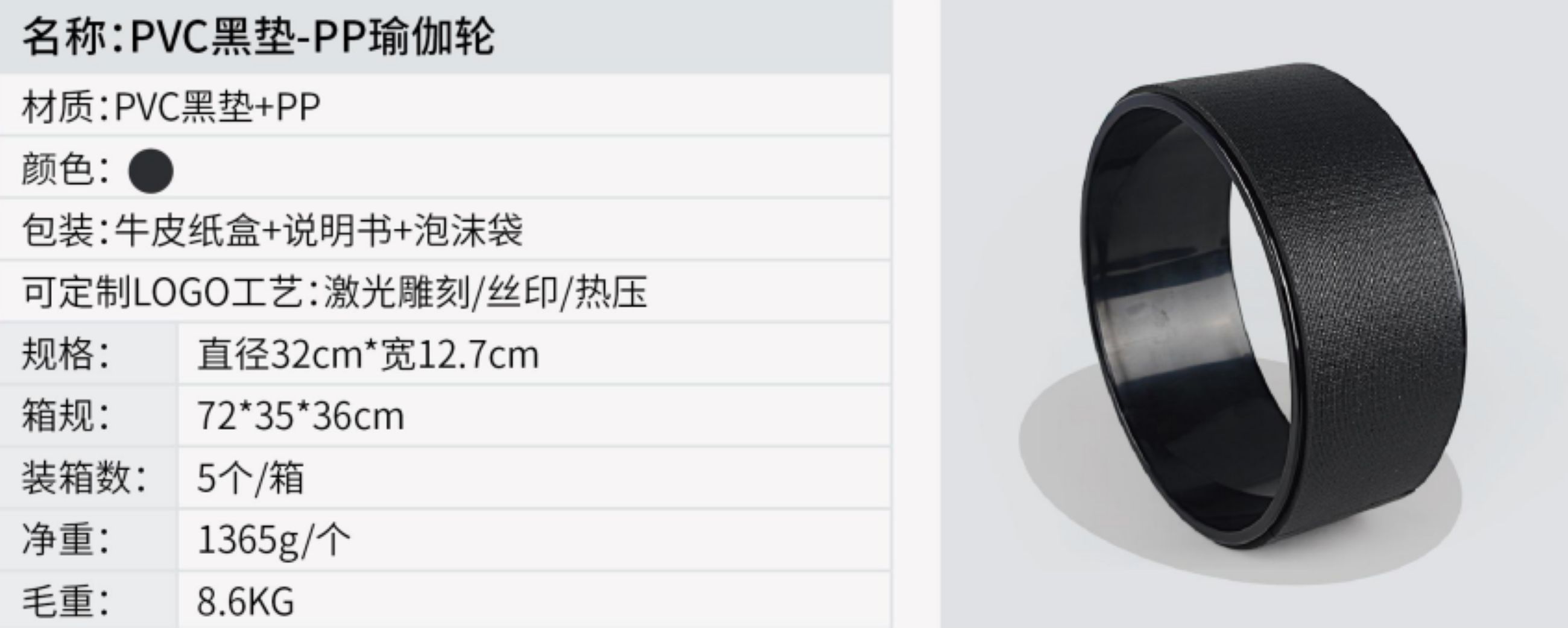 名称:PVC黑垫-PP瑜伽轮