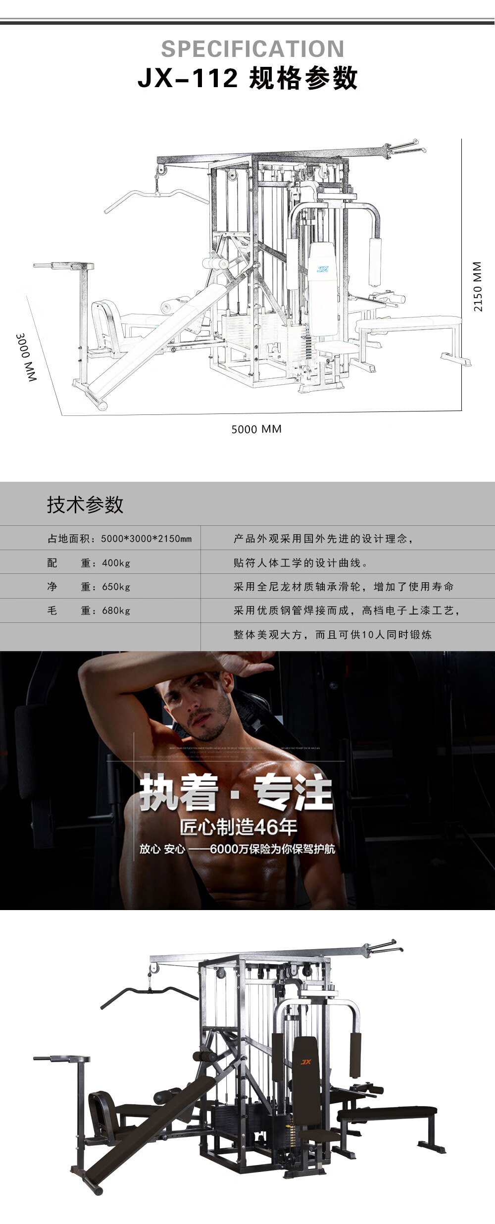 产品净重:650KG 产品毛重:680KG 配重:400KG