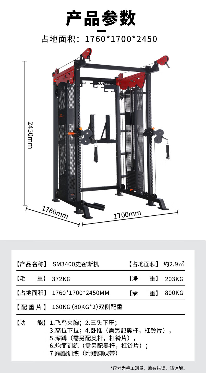康力源 史密斯训练器 Jx-SM3400 商用史密斯机 健身器材龙门架综合训练器 多种功能
