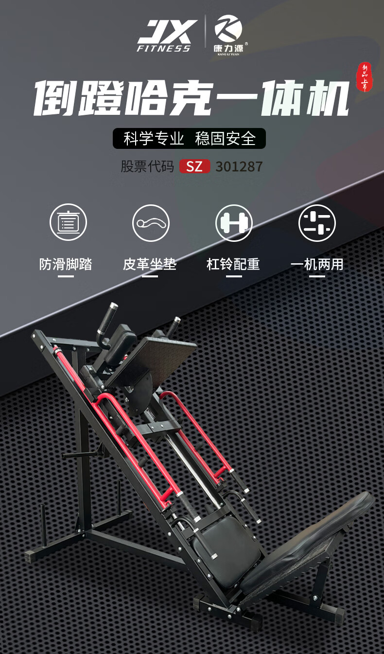 康力源 倒蹬哈克一体机 JX-2105 防滑脚踏 皮革坐垫 杠铃配重 一机两用 大型健身器材