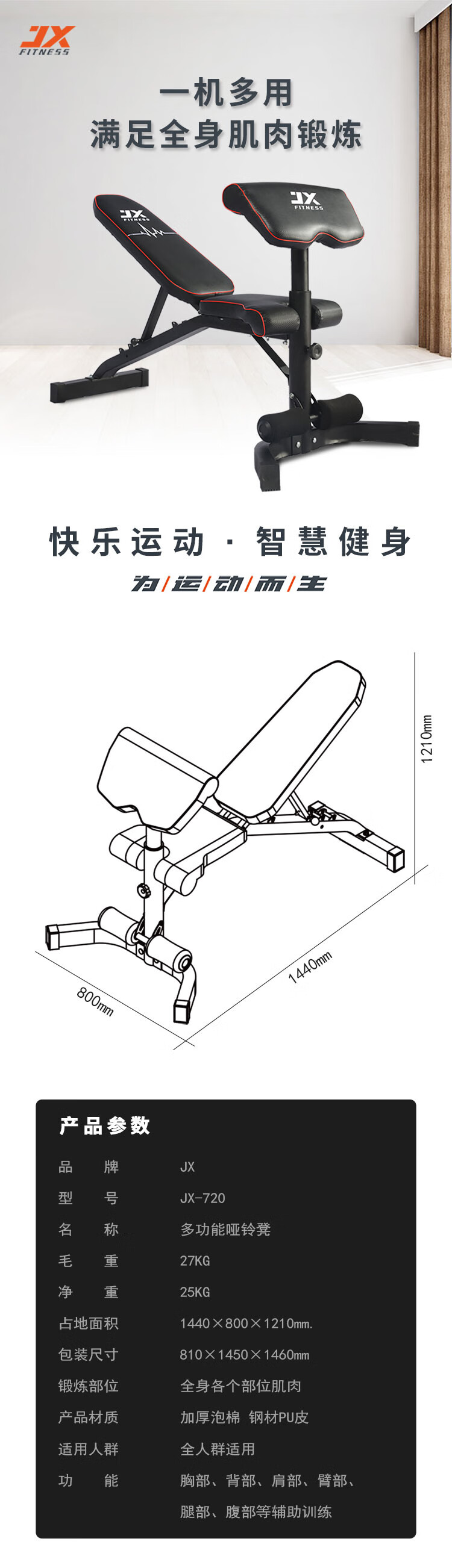 康力源 多功能哑铃凳 Jx-720 商用哑铃凳专业级健身椅 室内家用凳卧推凳 多功能哑铃椅