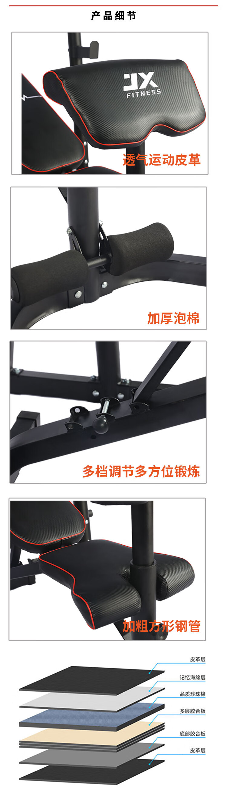 专业哑铃凳 透气运动皮革 加厚泡棉 多档调节