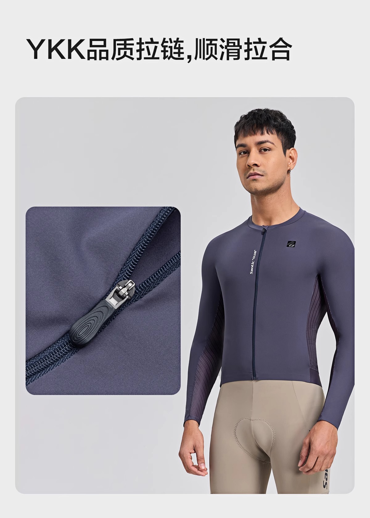Santic森地客骑行服长袖上衣男士春夏公路自行车透气轻量单车骑行服装备 禅灰色TM25C01184W