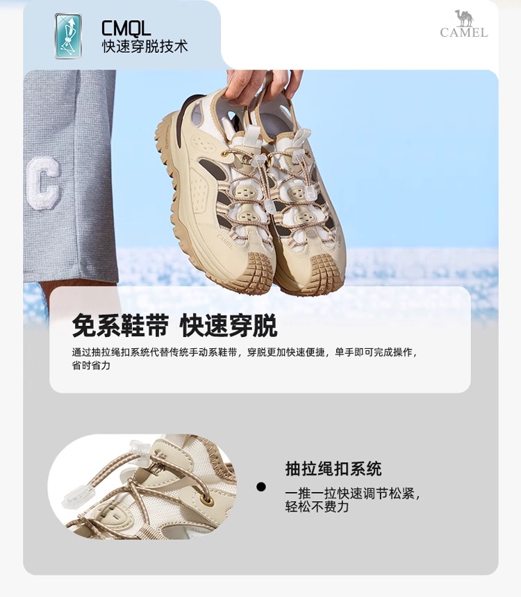 CAMEL骆驼溯溪鞋男士夏季新款户外运动网布透气速干鞋时尚防滑涉水鞋 米蓝 F14B397079