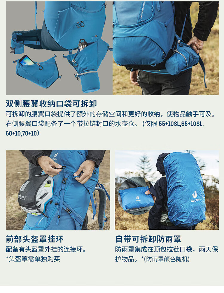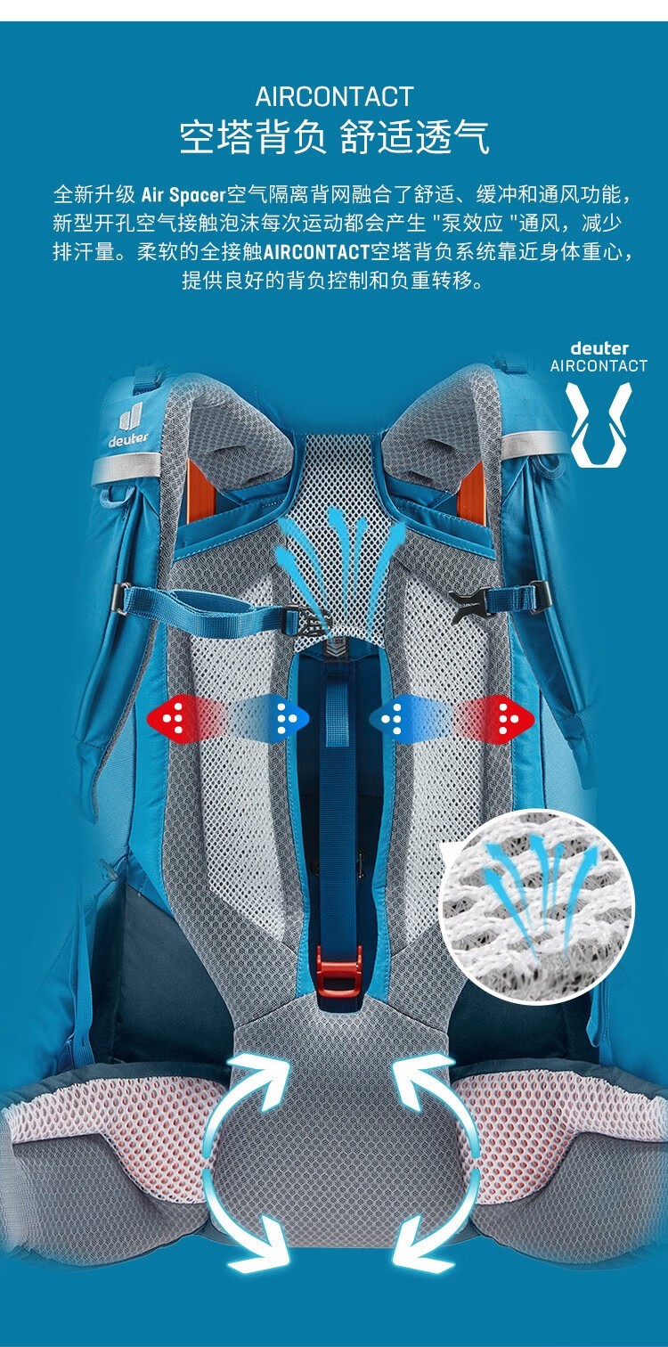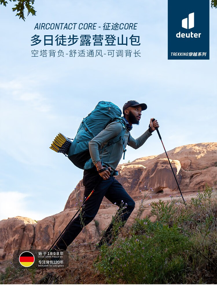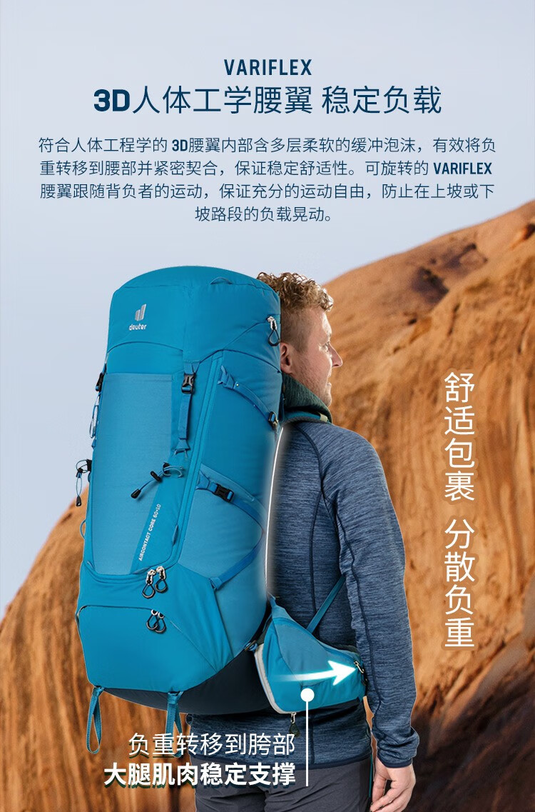 deuter多特 征途背包 CORE 50+10L 登山包 征途5-7日重装大容量户外包 徒步旅行露营探险双肩背包 大西洋蓝 可调节背长 3D人体工学腰翼 稳定负载