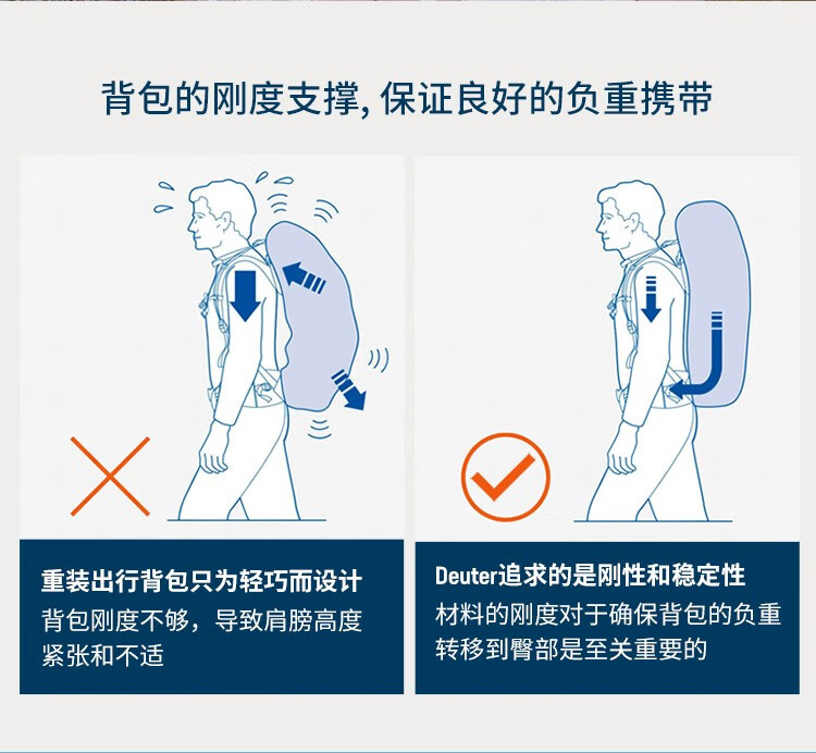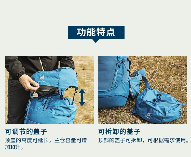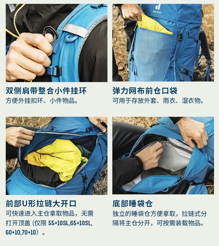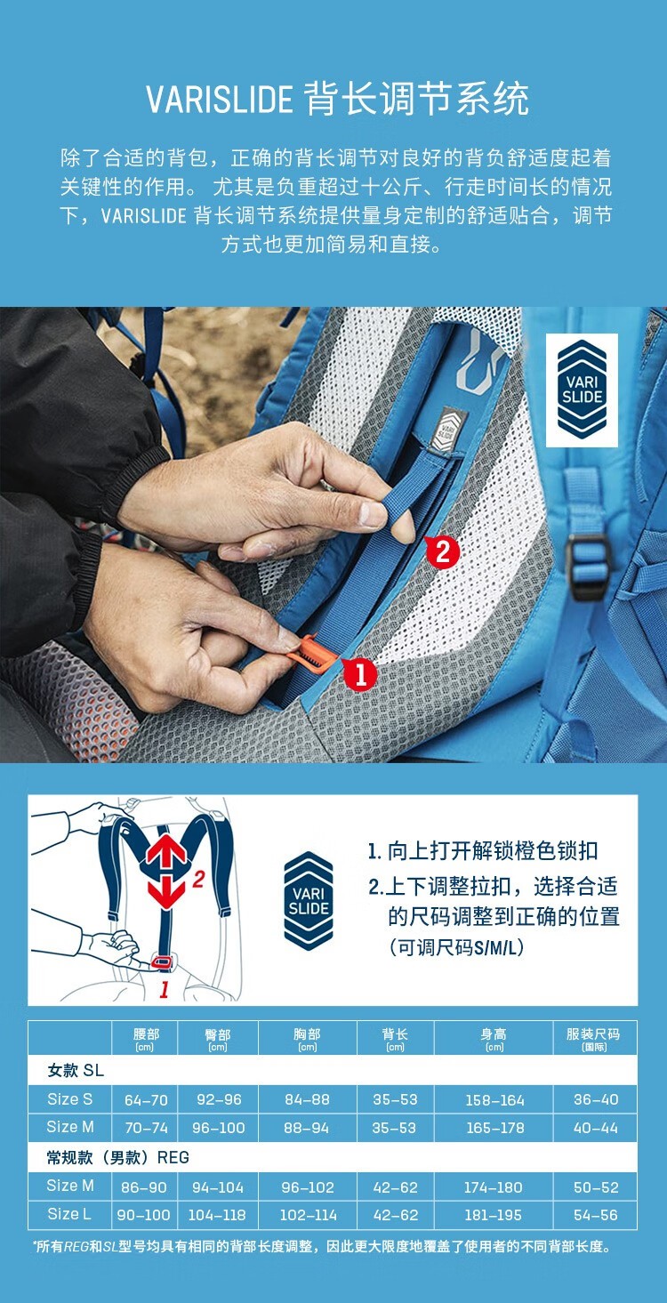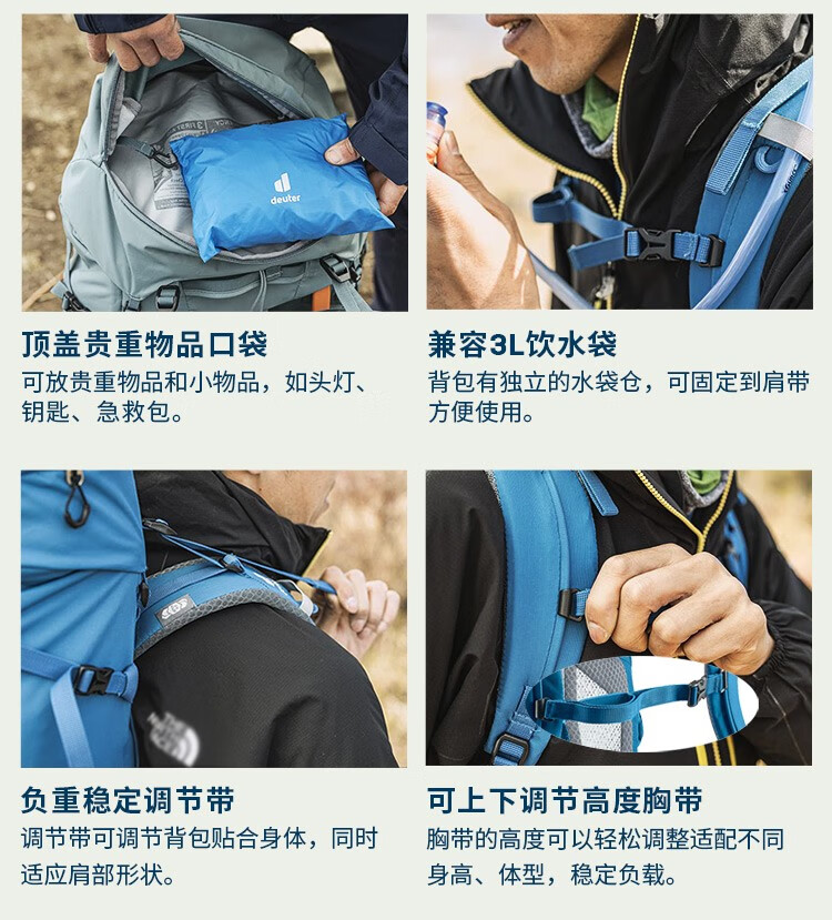 deuter多特 征途背包 CORE 50+10L 登山包 征途5-7日重装大容量户外包 徒步旅行露营探险双肩背包 大西洋蓝 可调节背长 3D人体工学腰翼 稳定负载