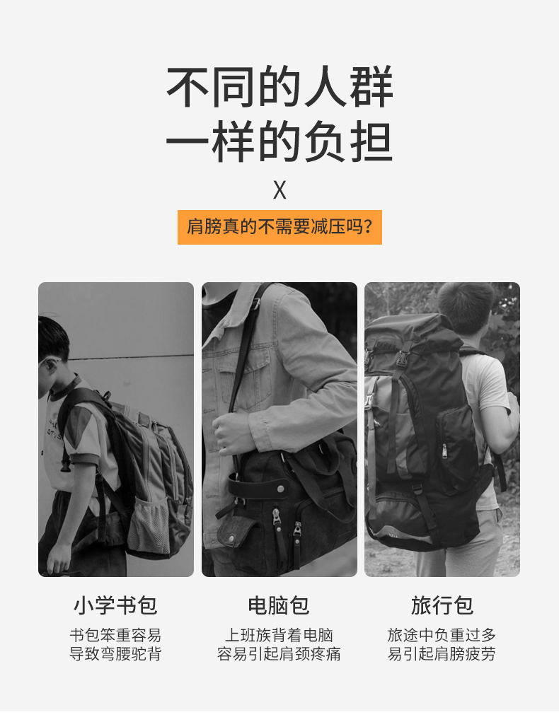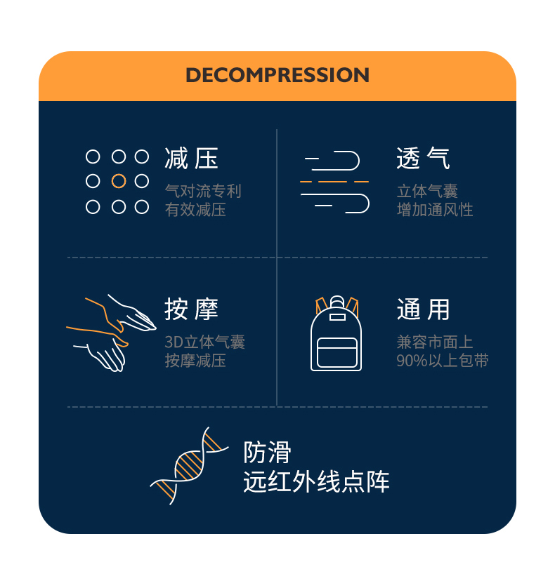 JFT BP-280 双肩三排气囊 普通款 (适合双肩包4-7.5CM) 不可按压充气 减压包带双肩单肩带 减压抗震防滑减负肩垫 登山背囊背带