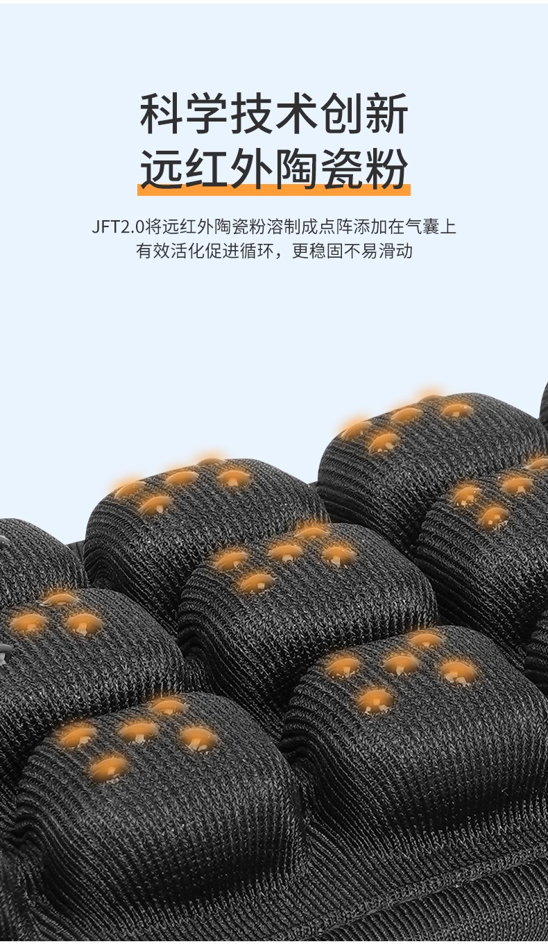 JFT2.0将远红外陶瓷粉溶制成点阵添加在气囊上,