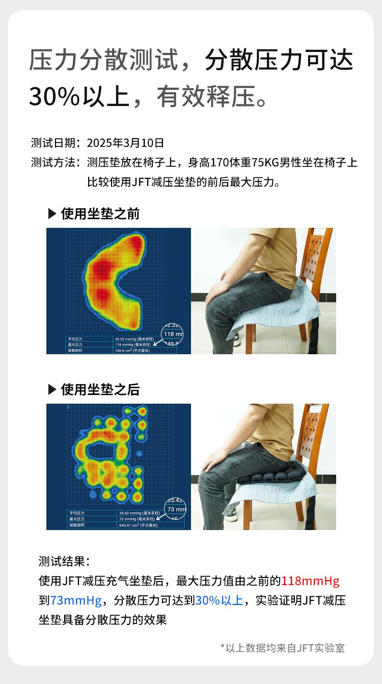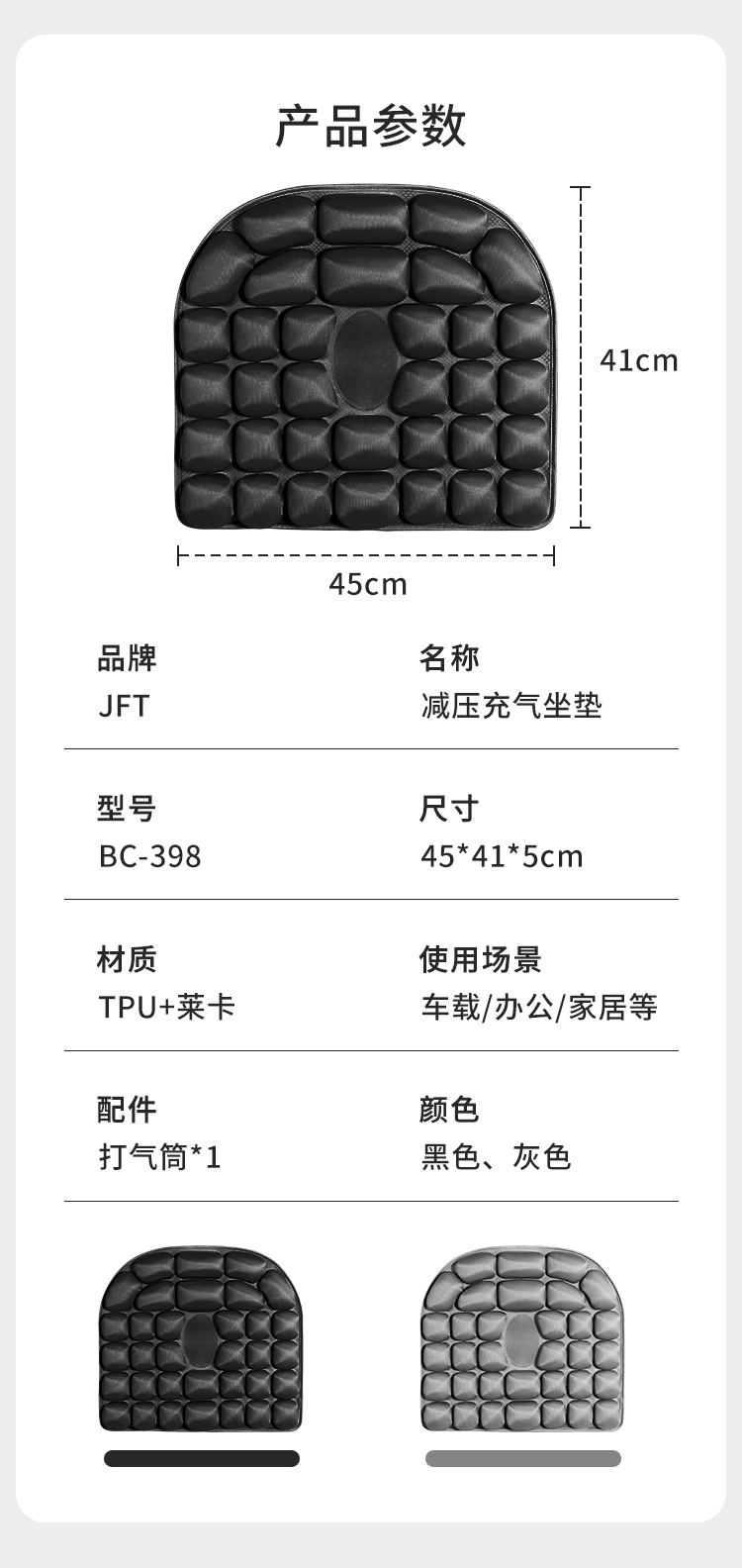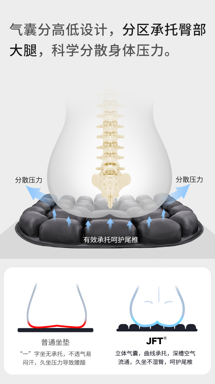 JFT BC-398 痔疮坐垫 气囊防褥疮坐垫 办公室座椅充气椅垫轮椅座垫 空气垫子椅子久坐透气 全面减压 透气干爽 呵护脊椎