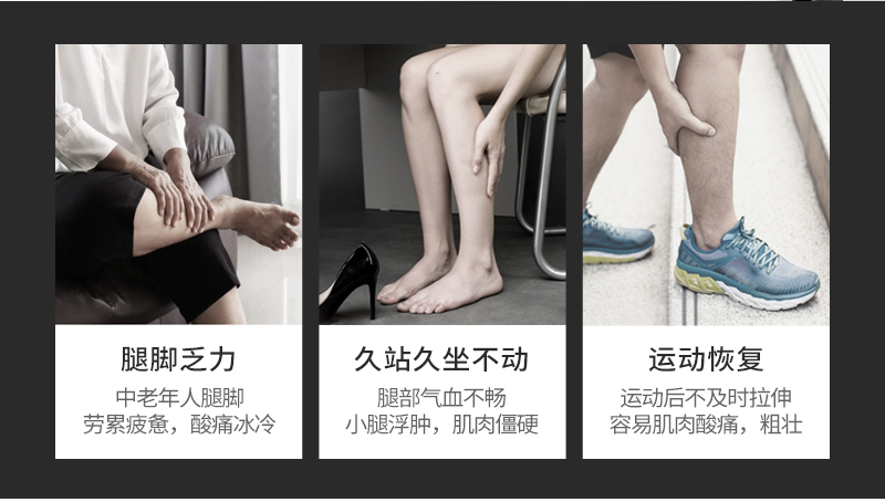 不同的按摩手法,舒缓腿部经络和腿部酸胀疲劳。