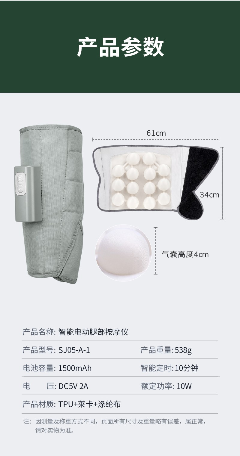 JFT SJ05-A-1 球形腿部按摩仪 气动仿生揉捏全自动小腿按摩器 热敷缓解疲劳电动腿部按摩仪 气囊包裹 无线便携 3档力度