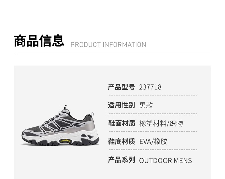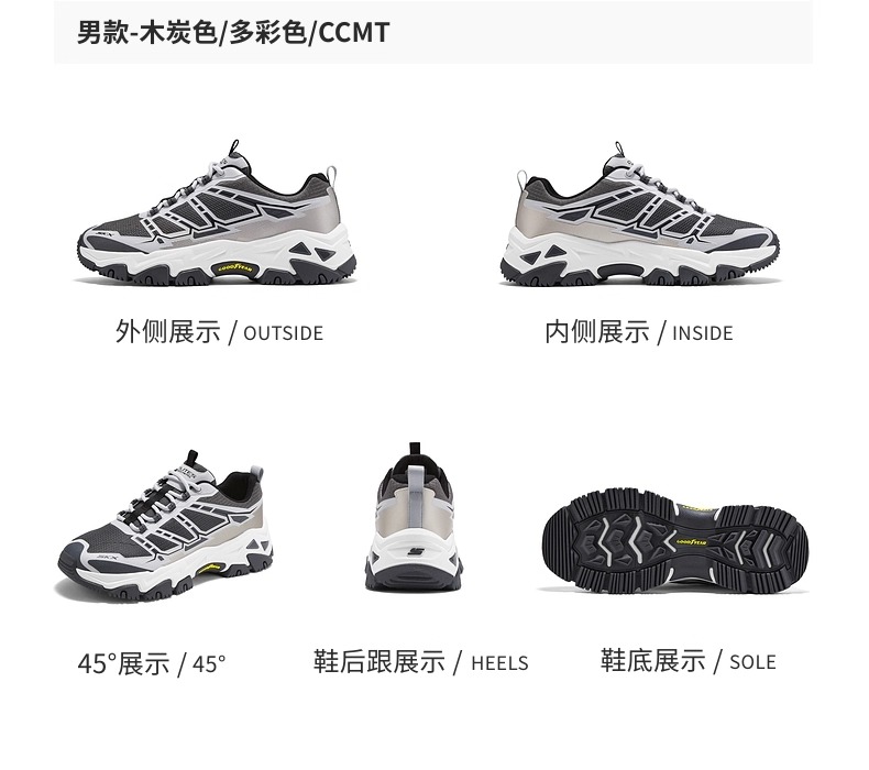 斯凯奇 户外鞋 237718-CCMT 木炭色/多彩色 2025秋季男女同款户外运动休闲鞋 轻质吸震透气设计舒适时尚 橡塑材料/织物 拼接鞋面 记忆泡棉鞋垫
