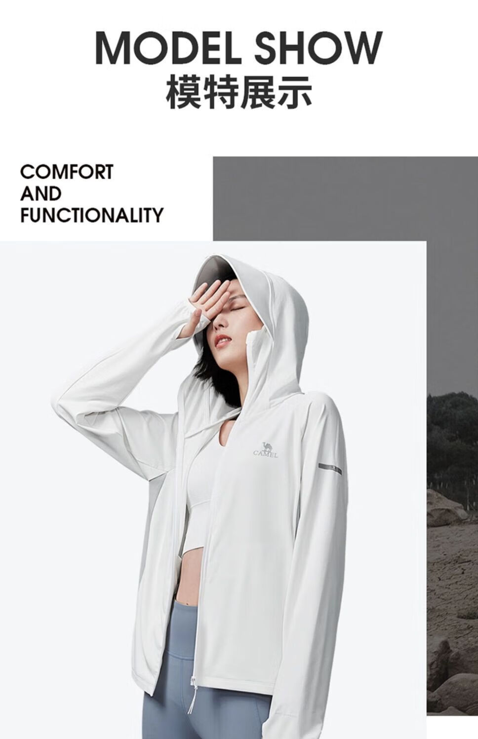 性能:冰感科技处理面料,贴合肌肤瞬感清凉,结合UPF50+防晒系数,户外出行不怕暴晒,持久清爽舒适;